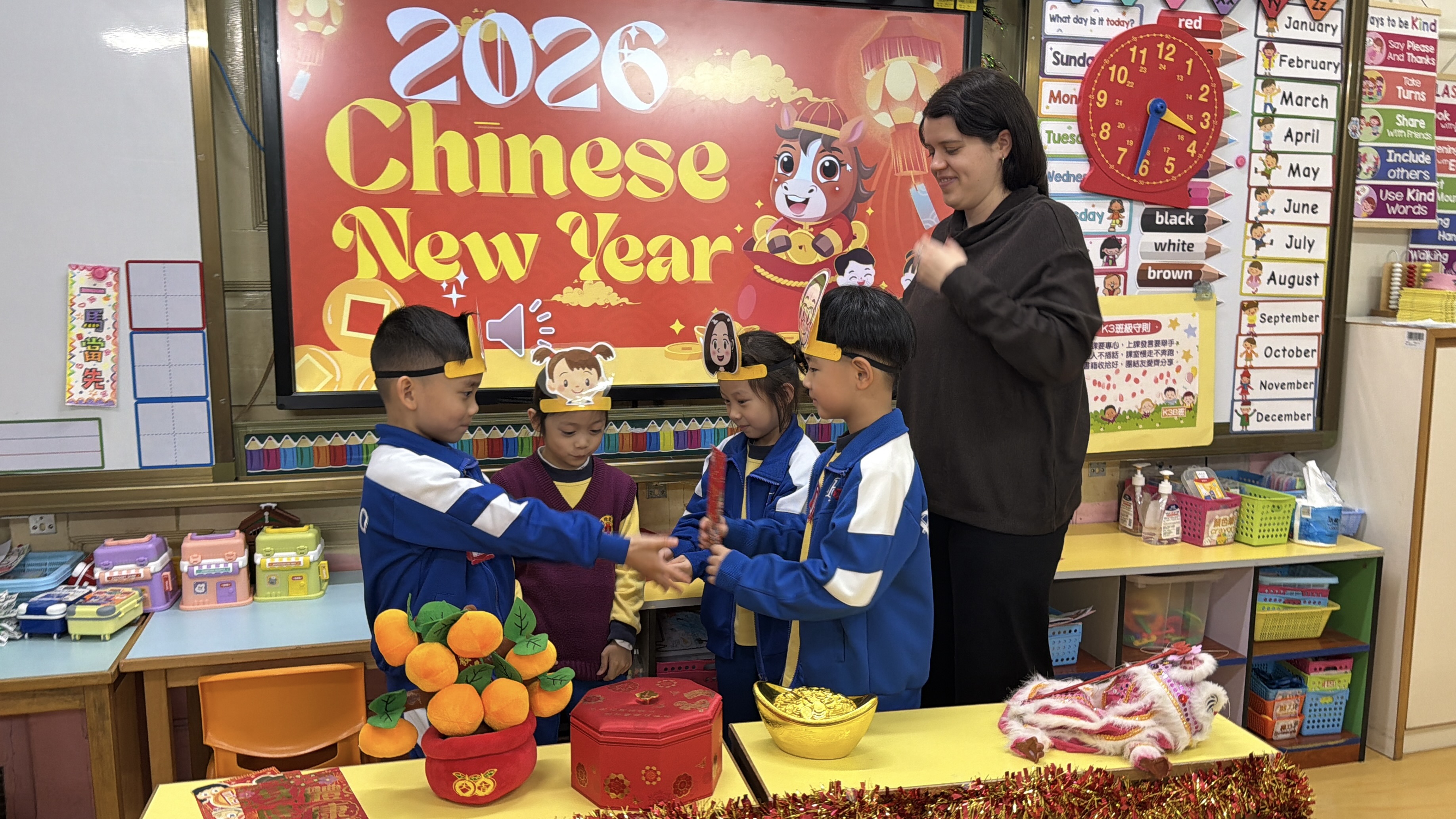 隨着農曆新年臨近,為讓幼兒沉浸式感受新春節慶氛圍,培道南灣幼稚園聯合外籍教師Miss Lara開展新春主題英語互動活動,為幼兒介紹新年的特色物品,以趣味形式融合節日文化與英語啟蒙,師生同樂,共迎佳節。