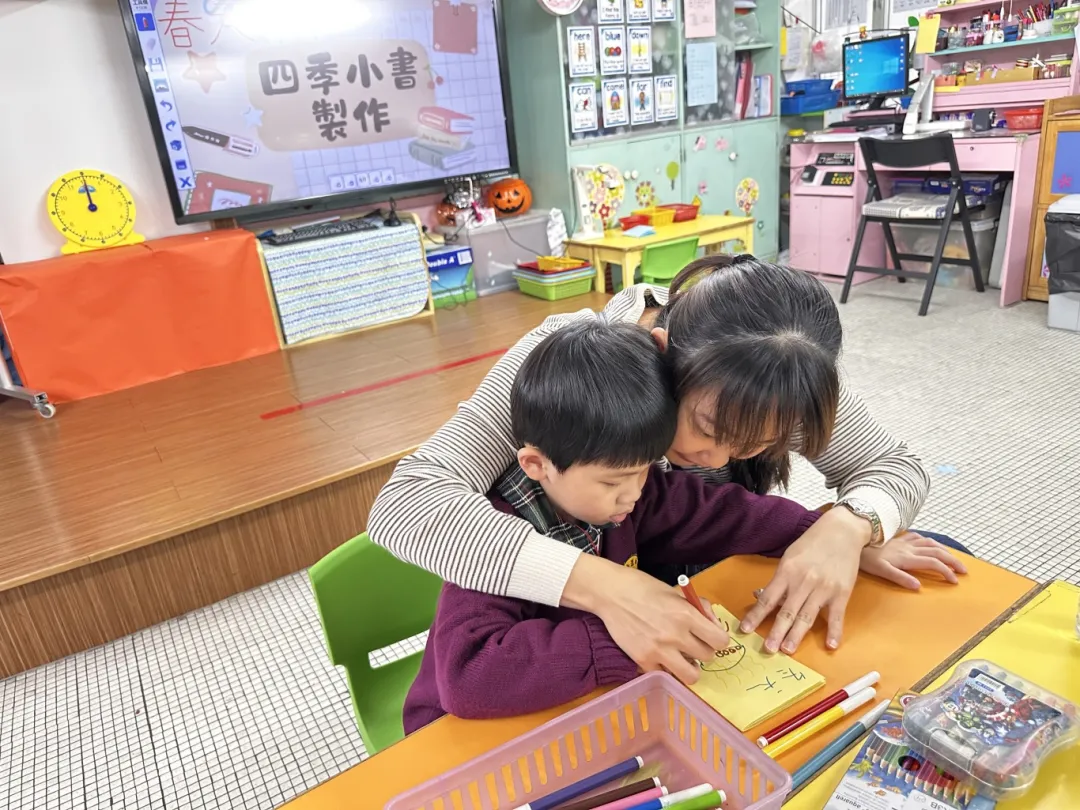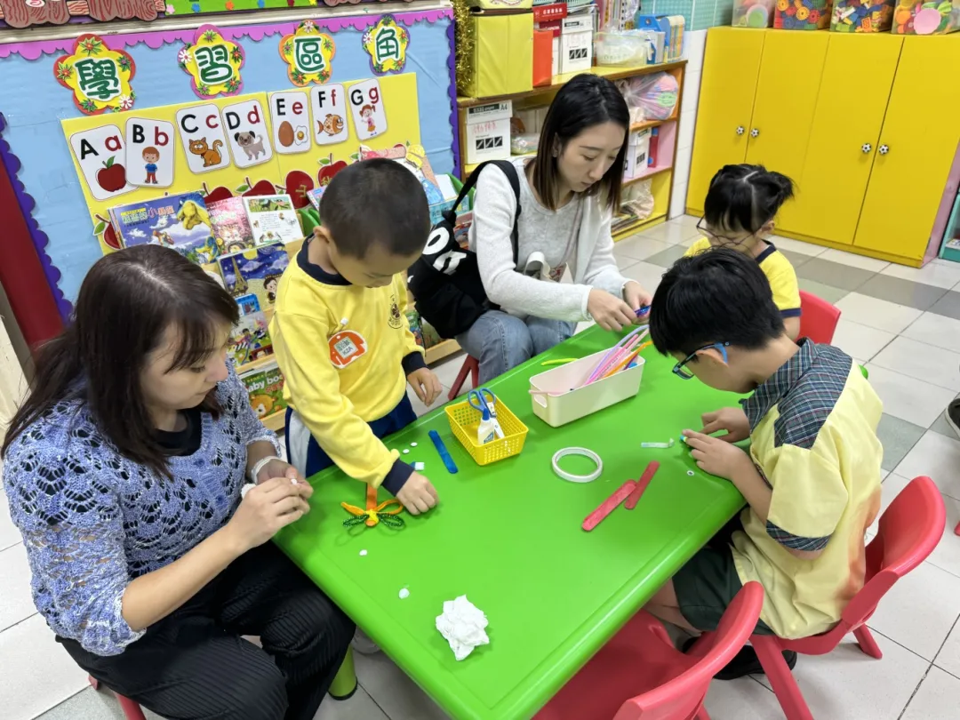 完成閱讀環節後,我們分級進行了兩場別開生面的親子工作坊,K 2「我的唯一」書籤製作,目的是激發幼兒對閱讀的興趣,讓閱讀變得更有趣,製作我的唯一書籤為自己的繪本留下閱讀的足跡;K3「多變的四季」亦由幼兒與家長一起創作小圖書,是一本屬於自己故事的圖書,藉此提升幼兒的想像力及創作力。