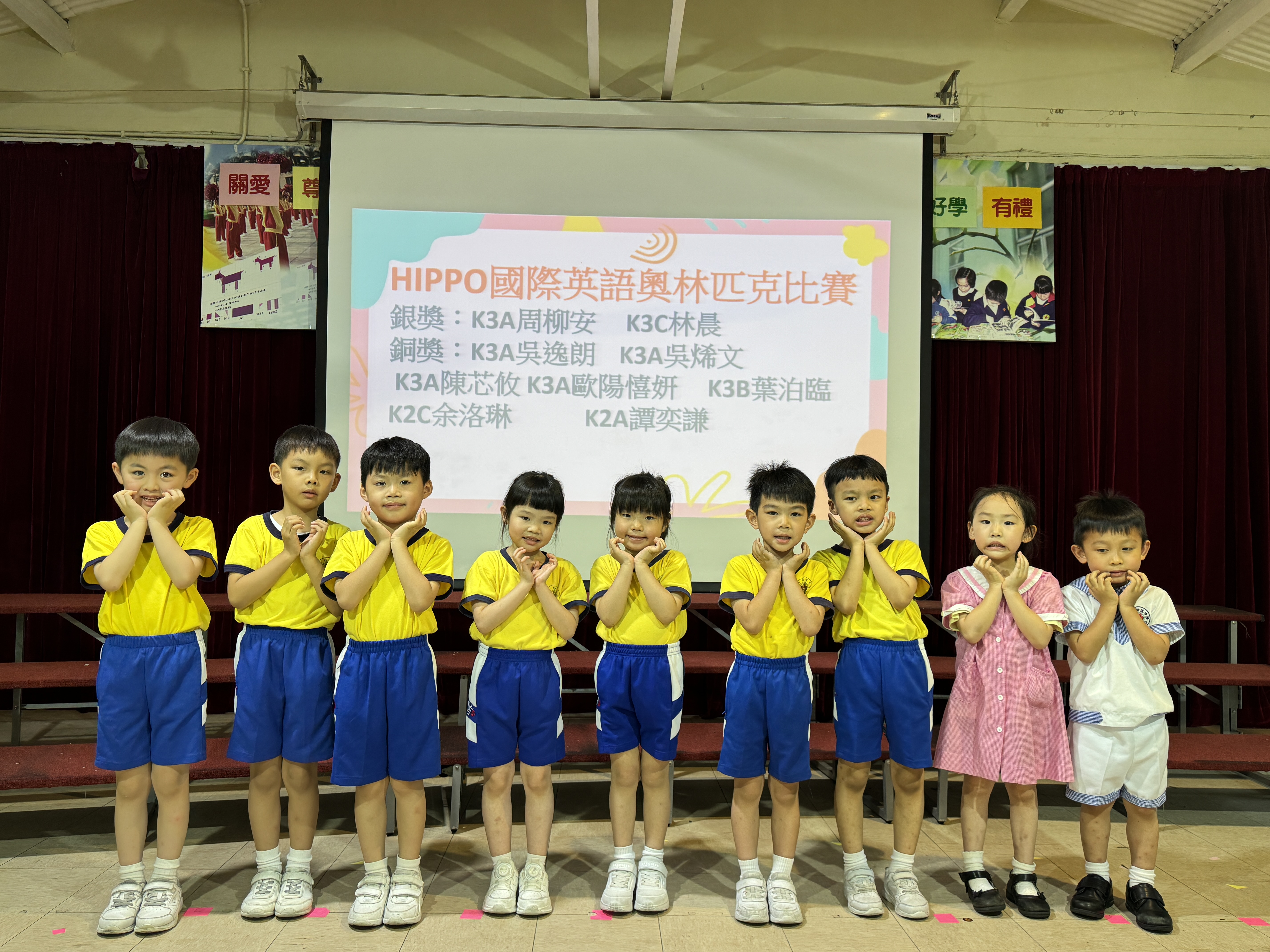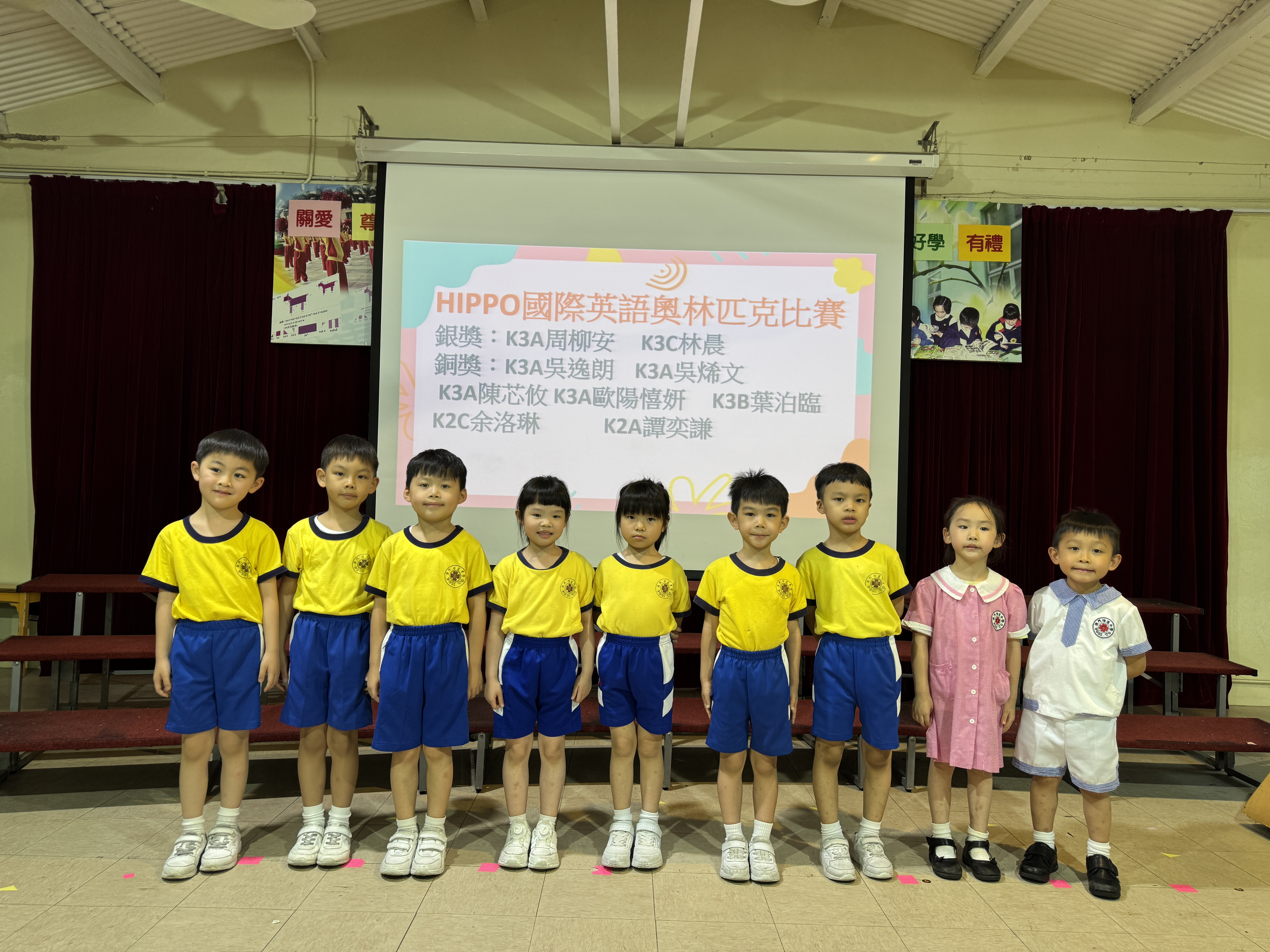 HIPPO國際英語奧林匹克比賽 2銀 7銅 銀獎:K3A周柳安 K3C林晨 銅獎:K3A吳逸朗 吳烯文 陳芯攸 歐陽憘妍 K3B葉泊臨 K2C余洛琳 K2A譚奕謙