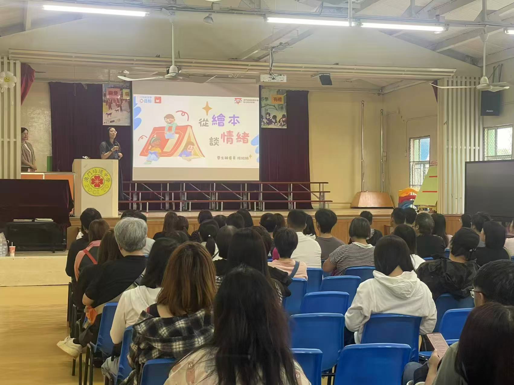 駐校社工陳姑娘則透過經典繪本,引導家長認識兒童情緒發展,並分享如何透過閱讀提升孩子的社會情緒力。講座中家長積極參與互動模擬,反應熱烈,掌聲不斷。