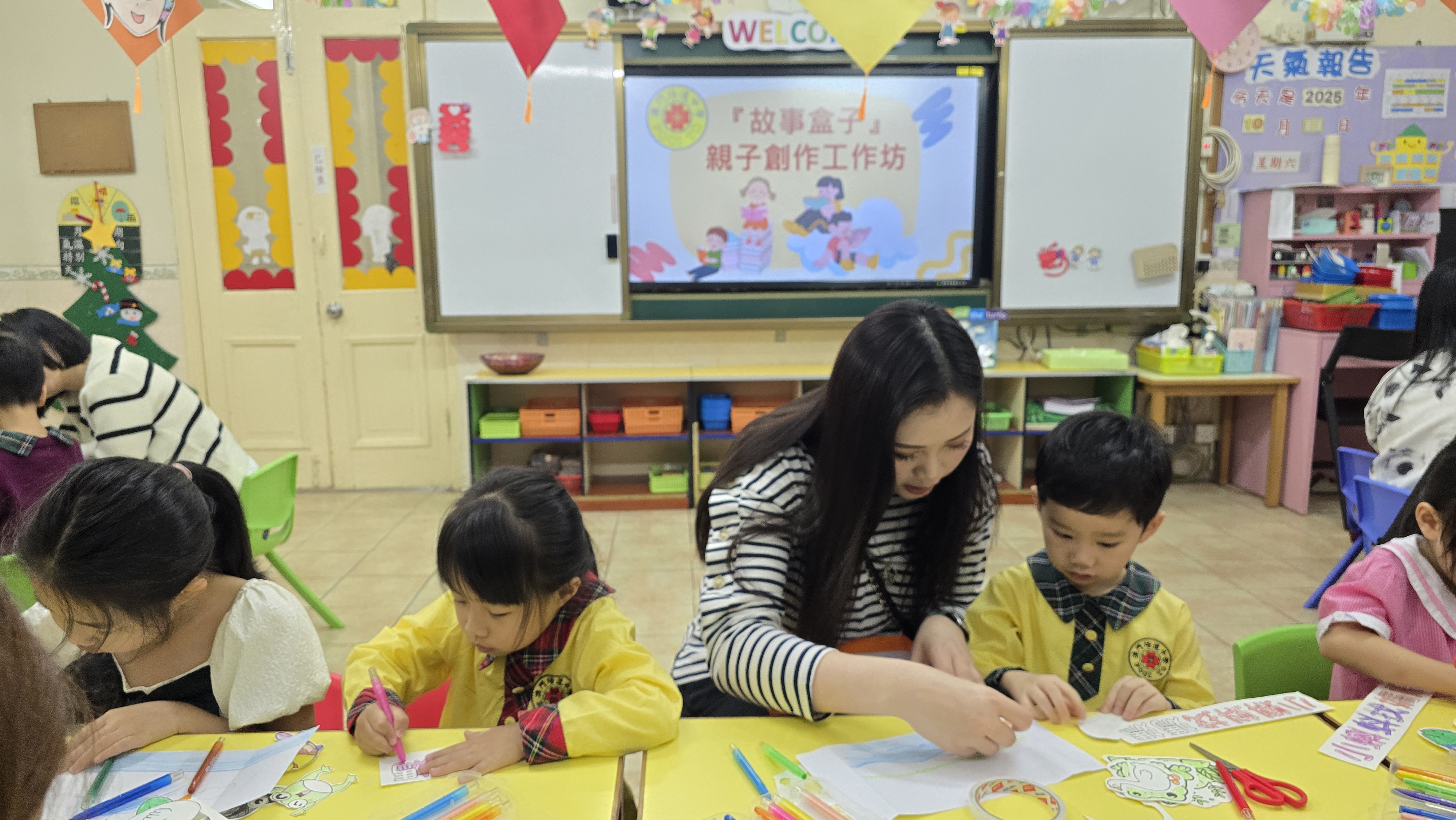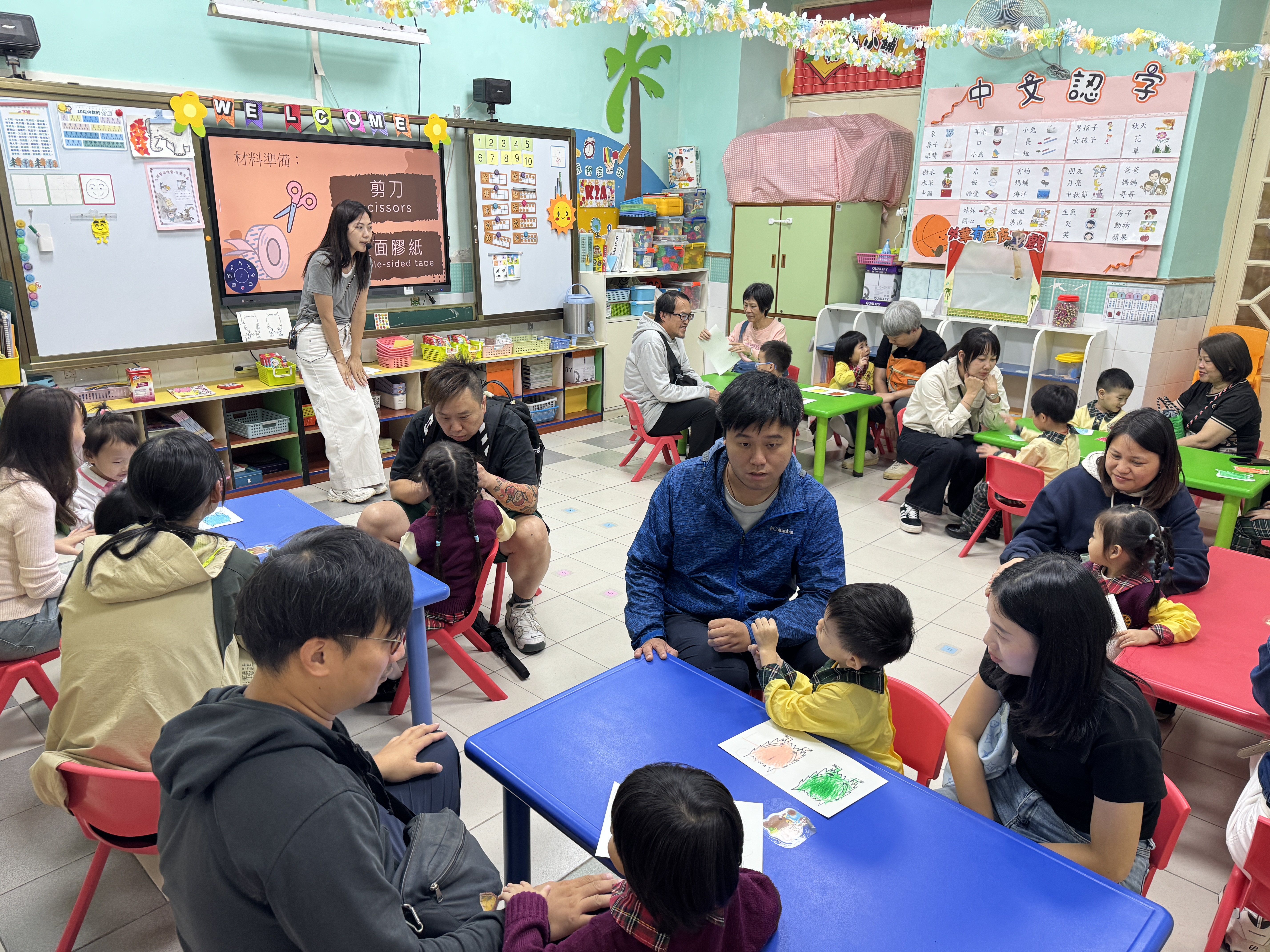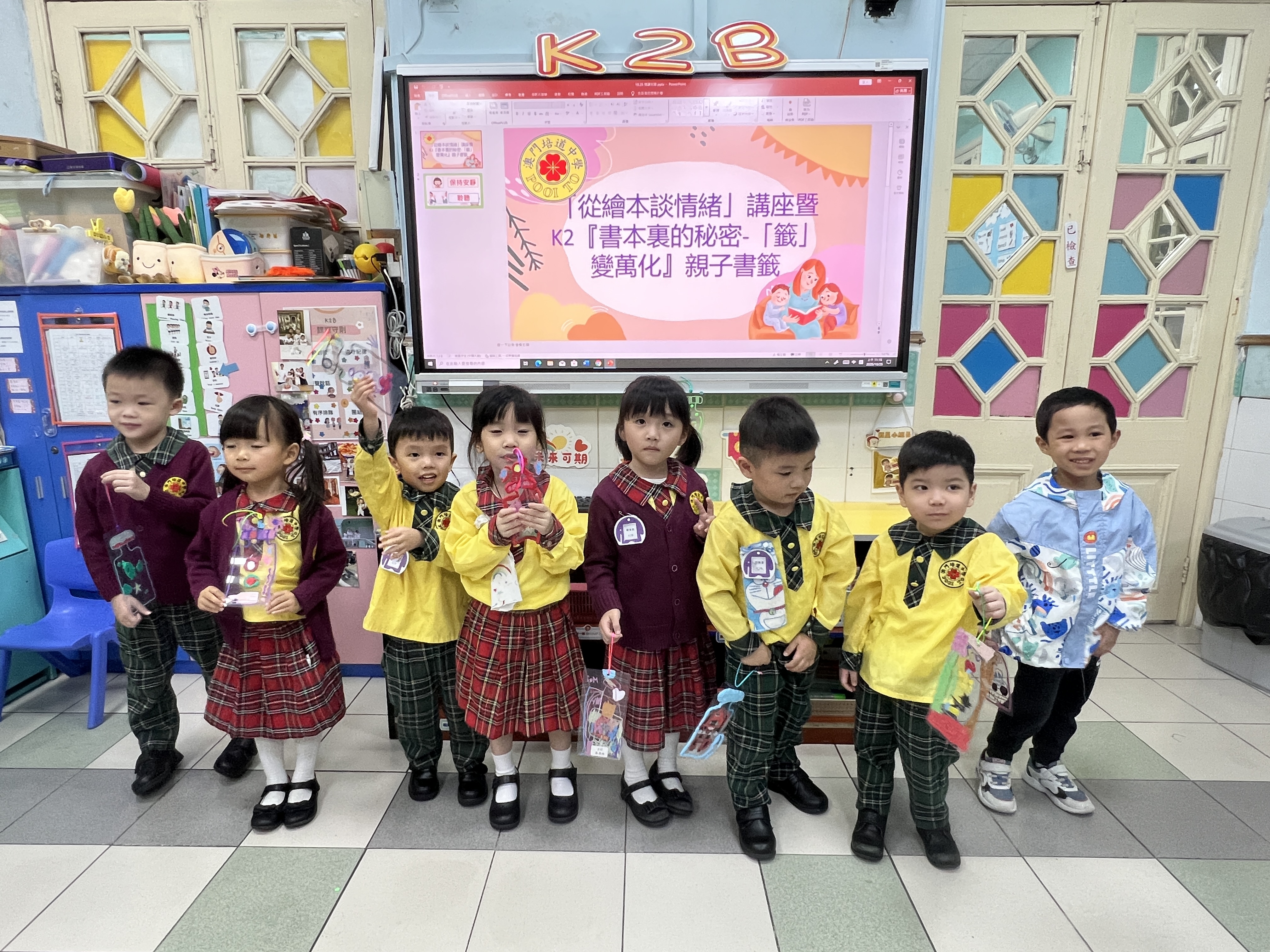 隨後進行的親子創作環節氣氛熱鬧,K3班以「中英文故事盒子」為主題,孩子與家長一起動手製作,將閱讀轉化為互動遊戲;K2班則進行「書本裏的秘密——『籤』變萬化」書籤創作,孩子們發揮創意,製作獨一無二的閱讀紀念。