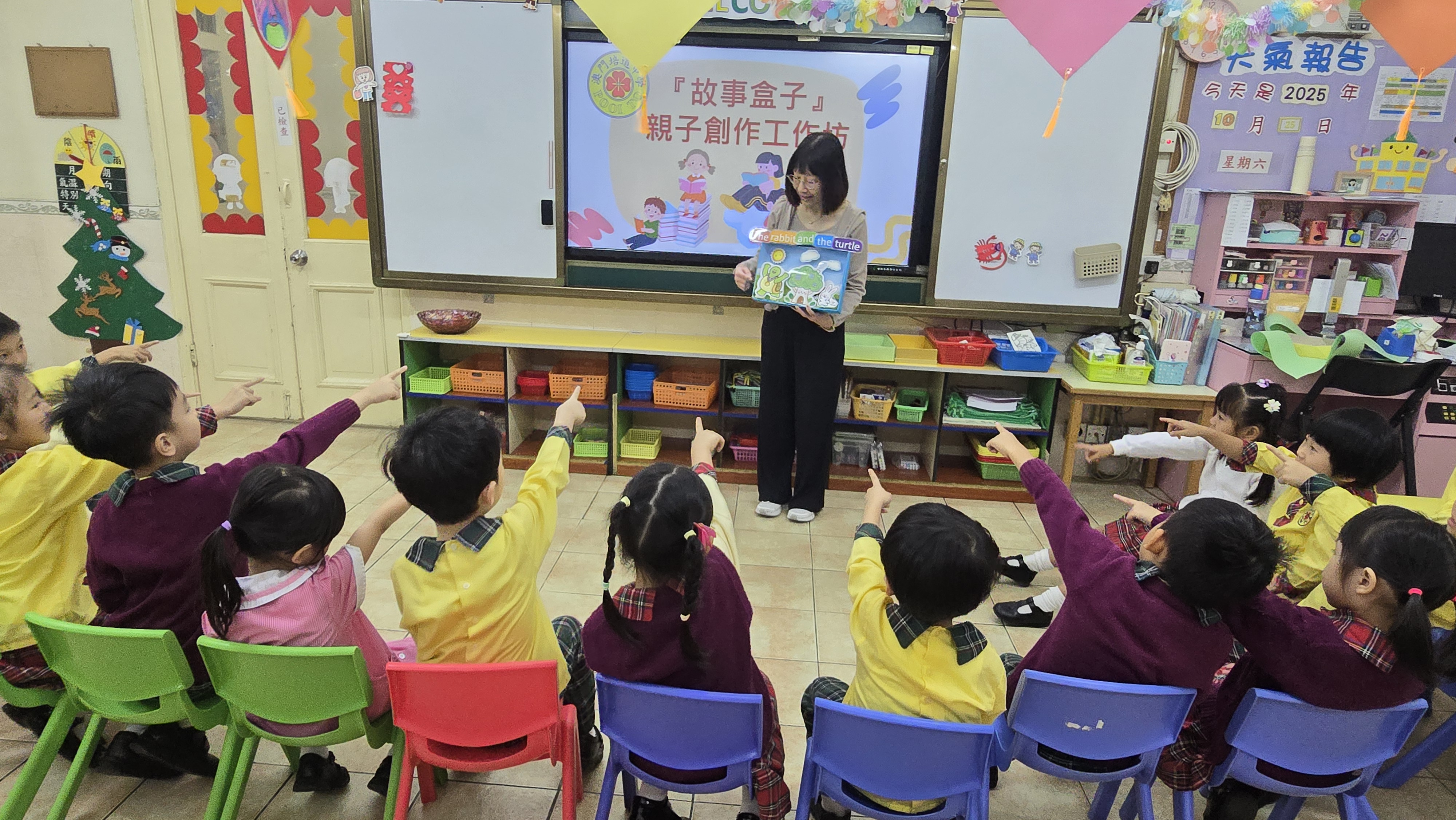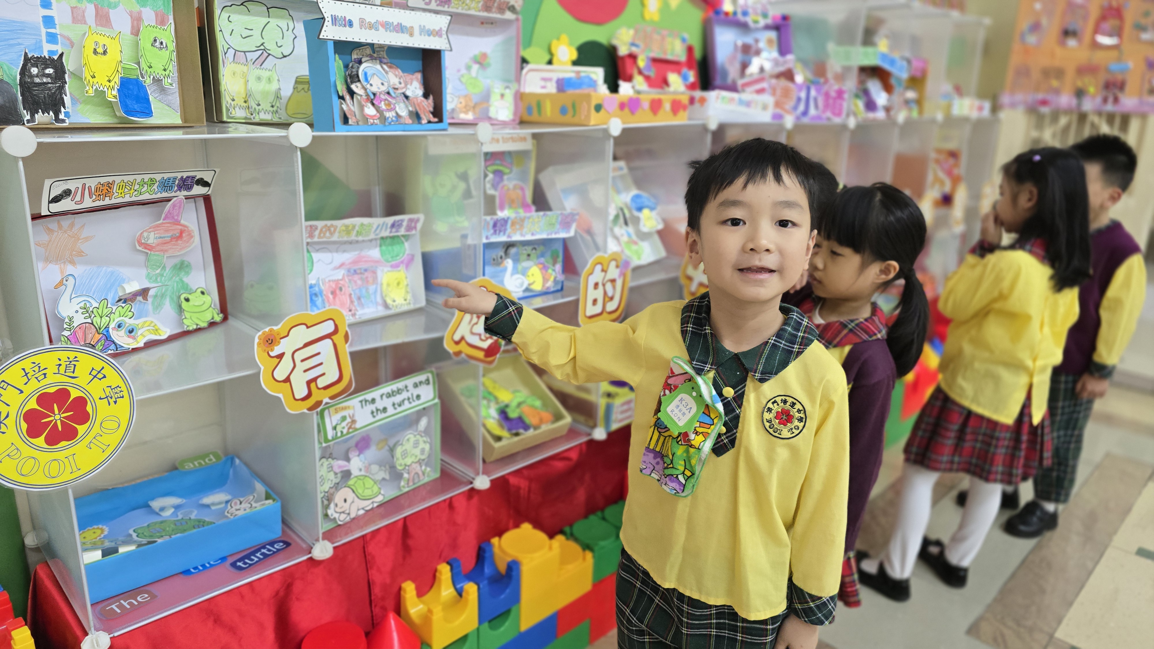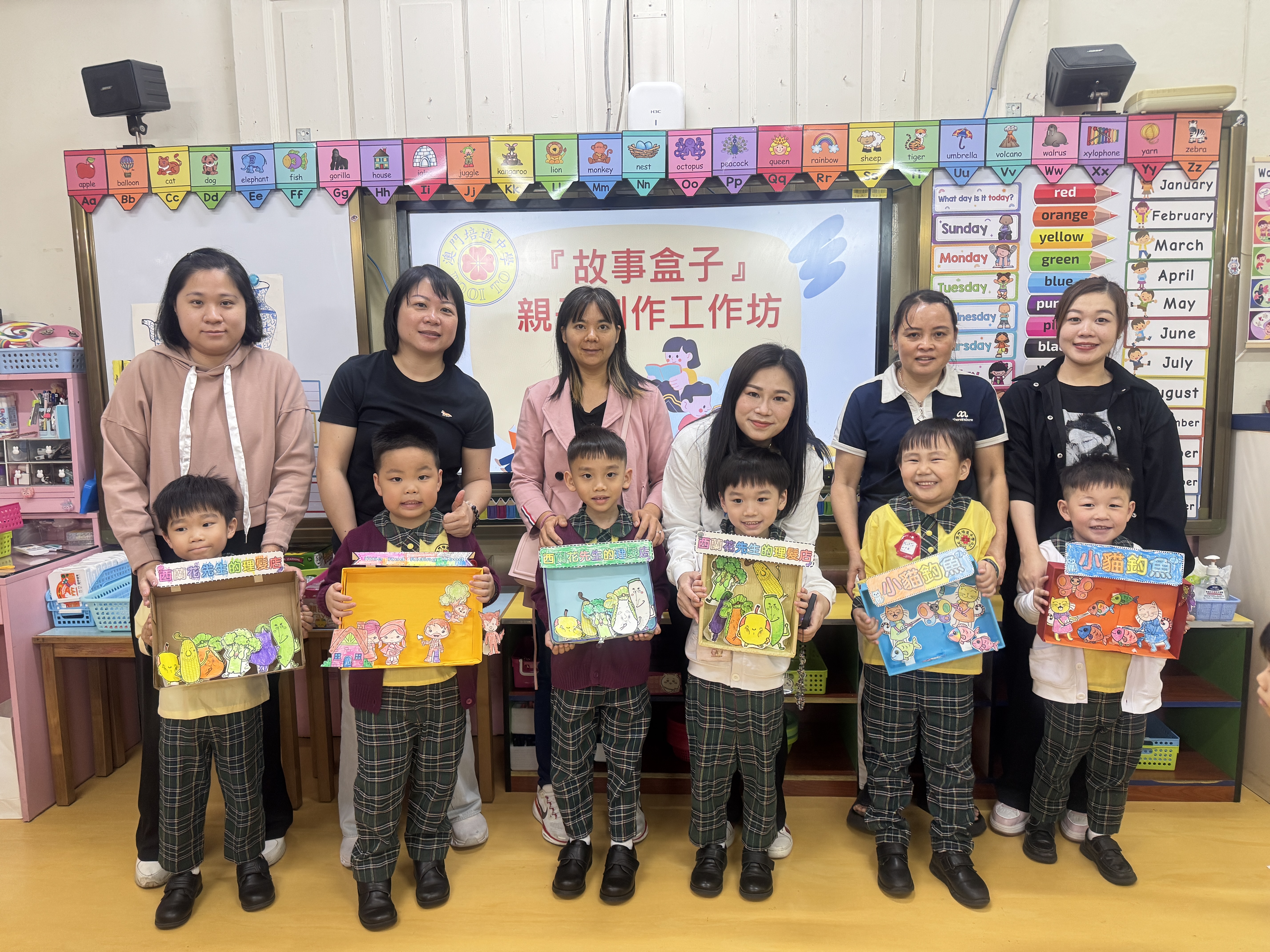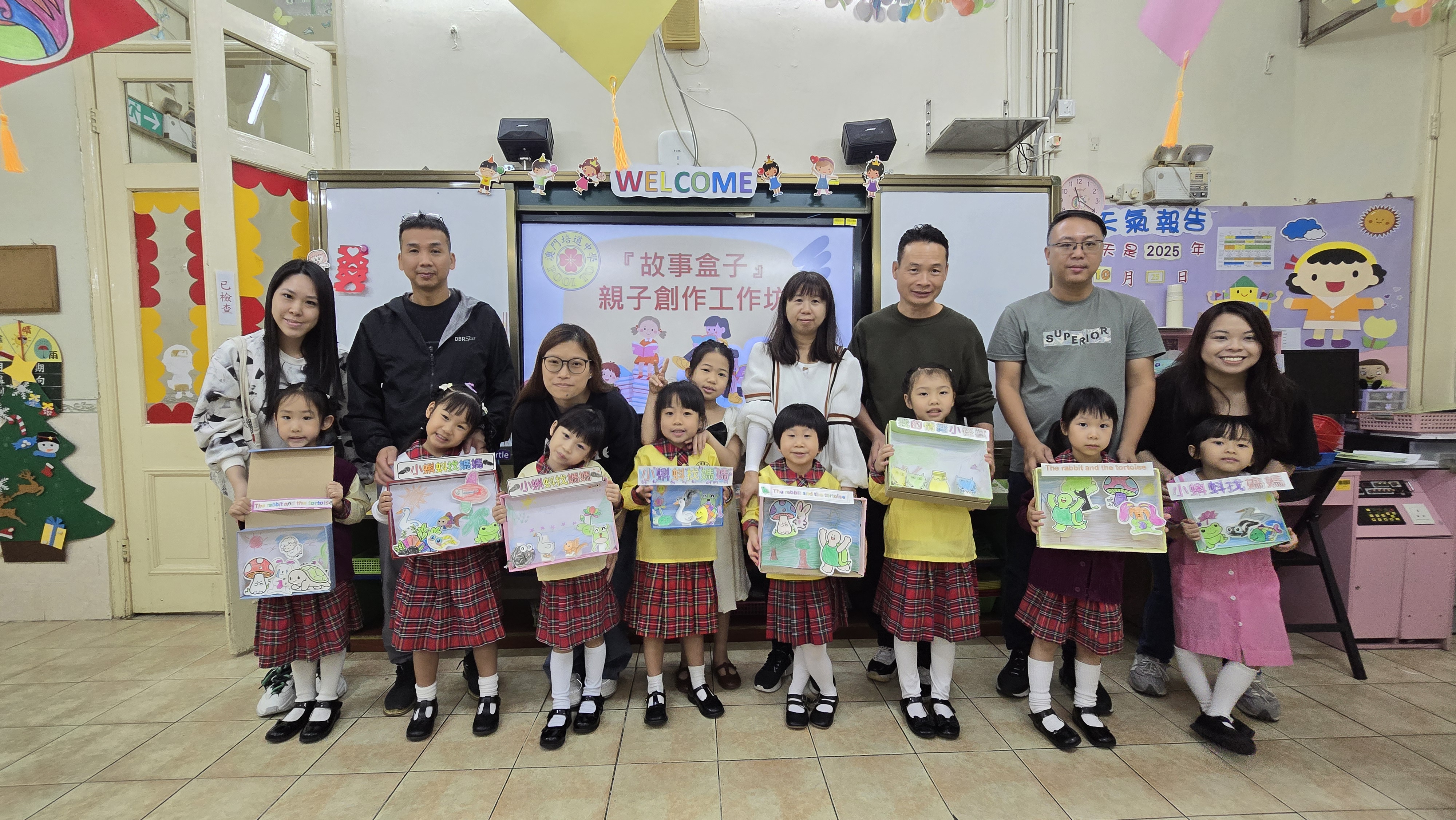 隨後進行的親子創作環節氣氛熱鬧,K3班以「中英文故事盒子」為主題,孩子與家長一起動手製作,將閱讀轉化為互動遊戲;K2班則進行「書本裏的秘密——『籤』變萬化」書籤創作,孩子們發揮創意,製作獨一無二的閱讀紀念。