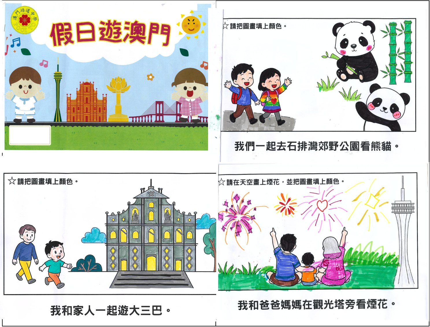 K1一人一書K1幼兒以「假日遊澳門」為核心,用稚嫩筆觸描繪與家人暢遊澳門的歡樂瞬間,定格親子遊玩的溫馨畫面
