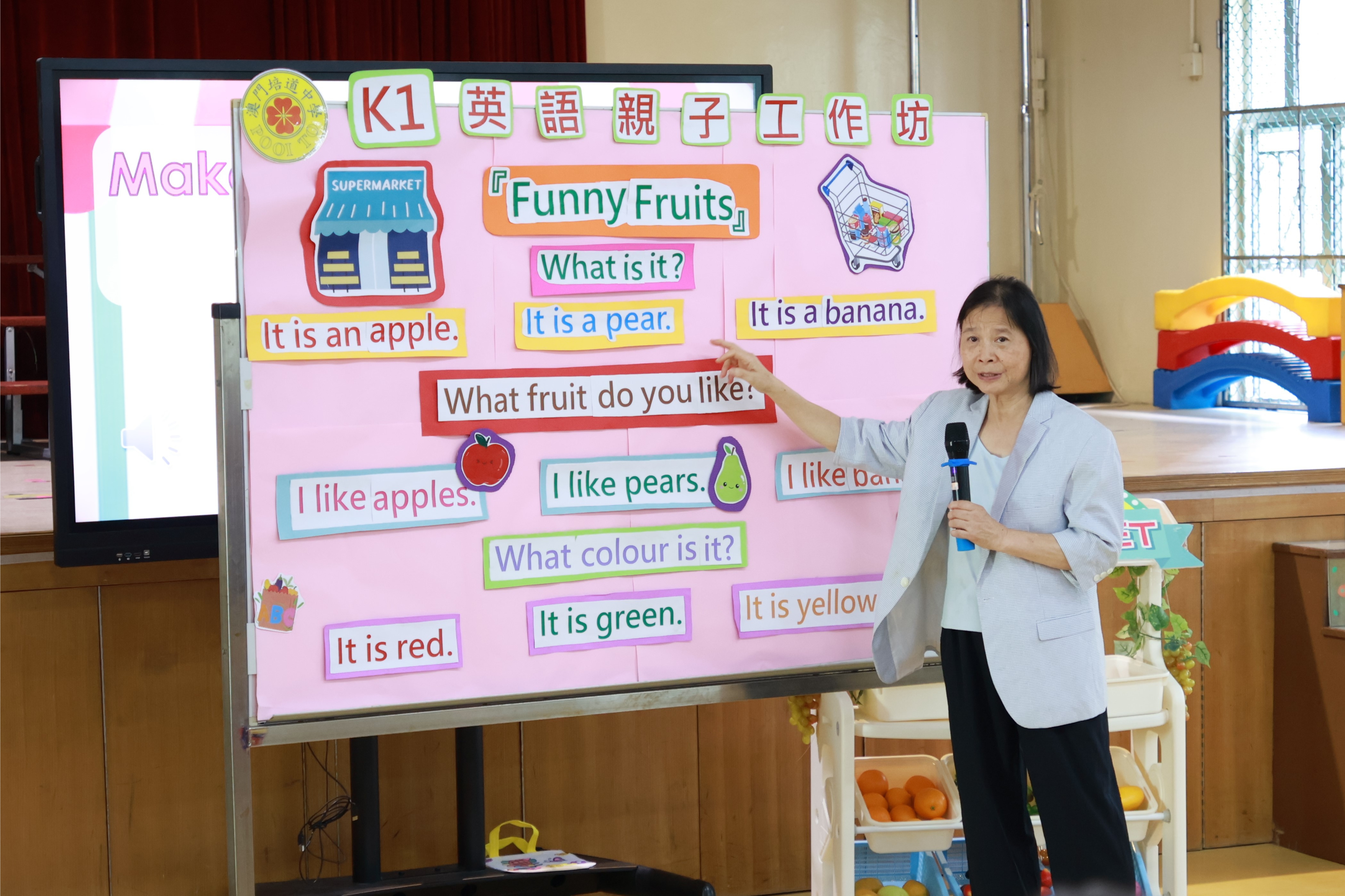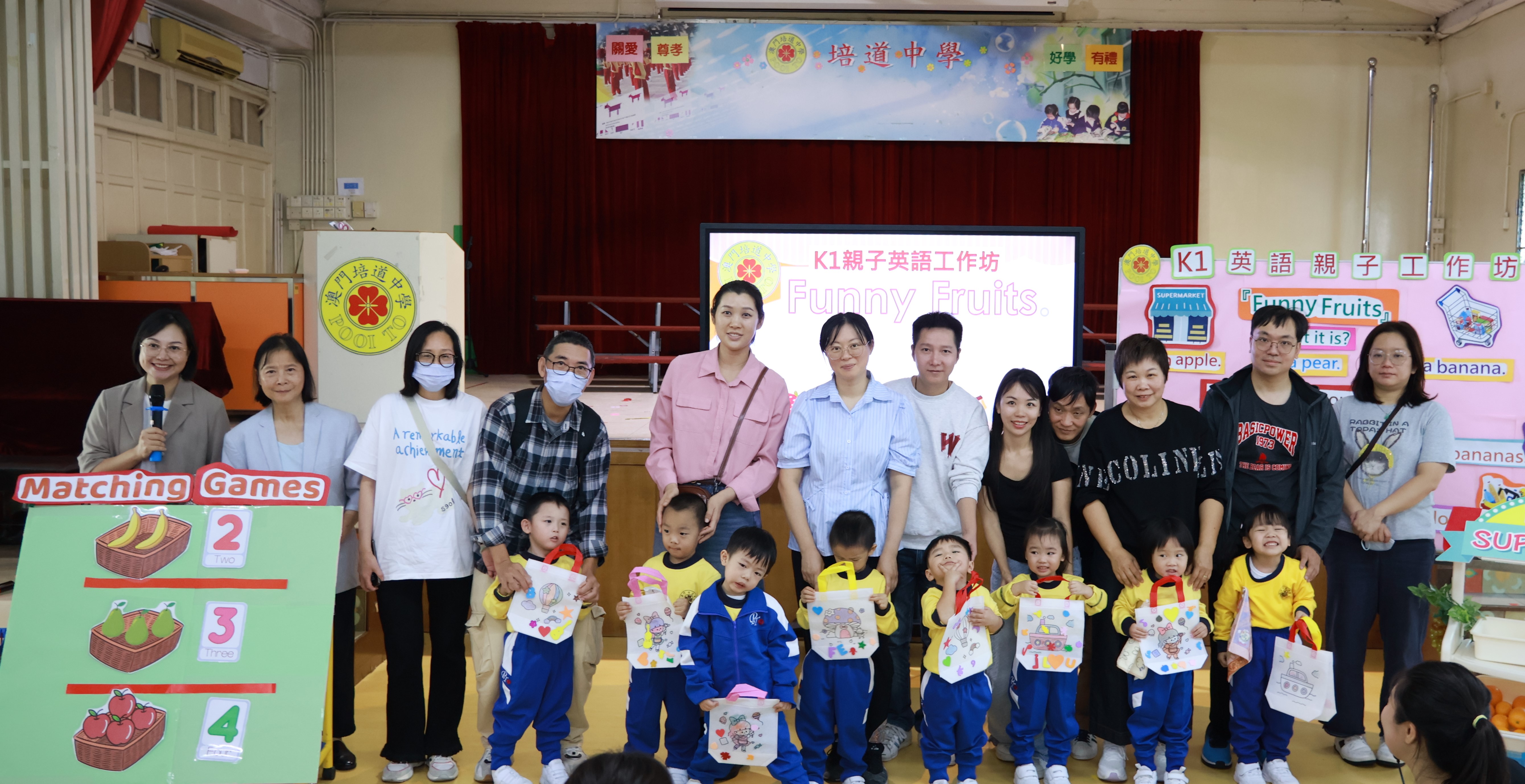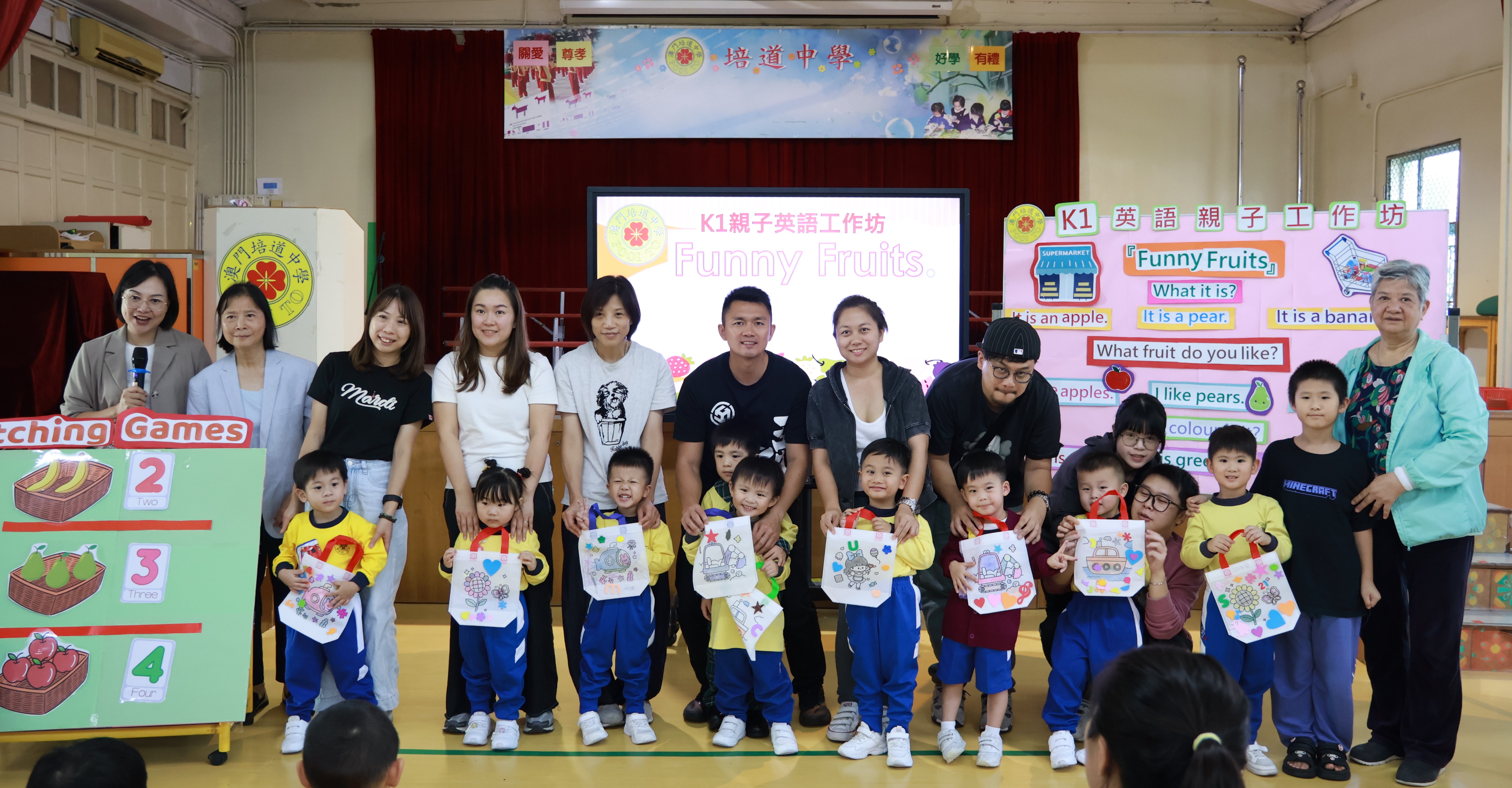 本校一向重視學生多元學習,英語教學以優質課程、遊戲化方式,讓幼兒在輕鬆氛圍中提升能力、激發興趣。早前培道南灣幼稚園舉行 K1 親子英語工作坊 “Yummy Fruits”,幼兒以全英表達喜愛水果,活動邀家長到校參與,體驗英語教學模式,見證孩子學習點滴與成長軌跡。