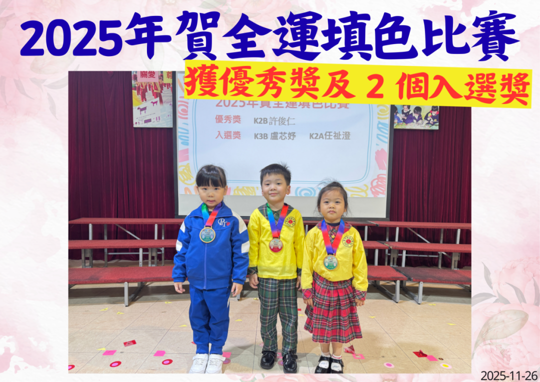 日前,培道南灣幼稚園開展「培道童趣滿 全運齊參與」活動,為讓幼兒融入第十五屆全國運動會的體育盛事中,幼稚園舉行了各項多元活動,包括各級參與了校外「賀全運 共慶盛會」著色繪本填色比賽,三位學生取得佳績,許俊仁獲優秀獎,盧芯妤及任祉澄獲入選獎。