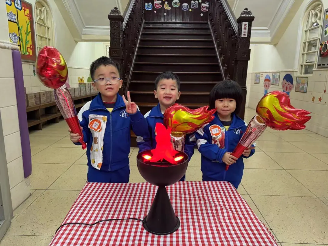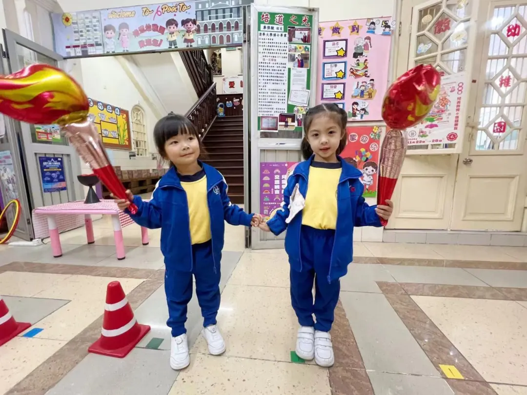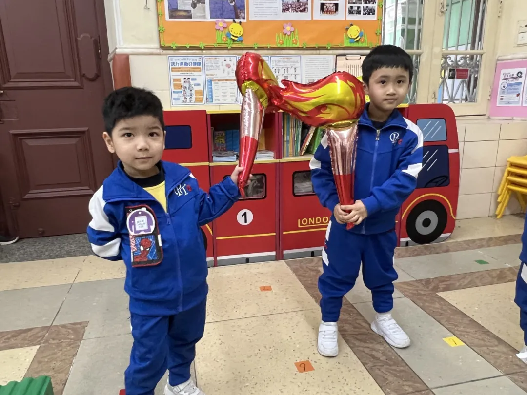 K2幼兒圍繞角色扮演「小小火炬手」和「全運會 齊參與」親子創作一人一書為主題開展活動。幼兒化身「小小火炬手」以象徵團結與傳承的「火炬傳遞」環節揭開序幕,幼兒手持小火炬輪流接力,感受運動盛事中全民參與的熱情。
