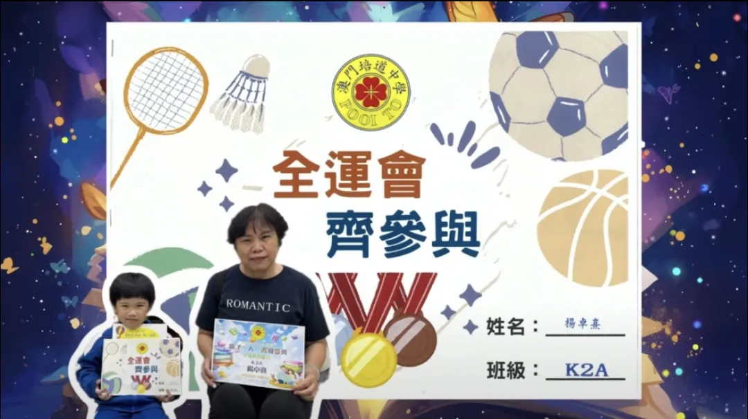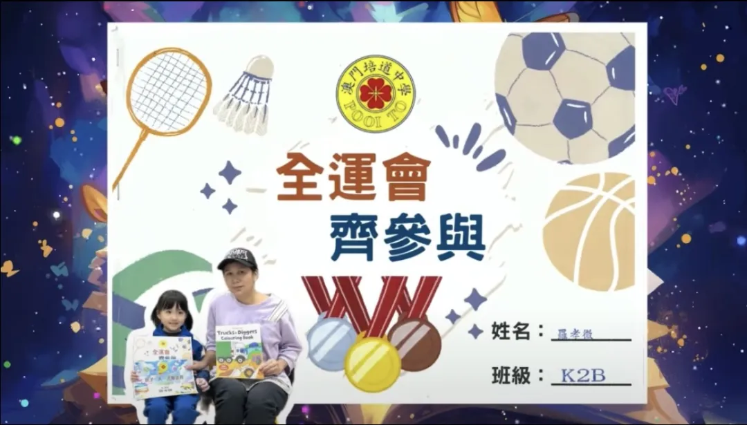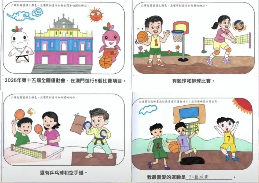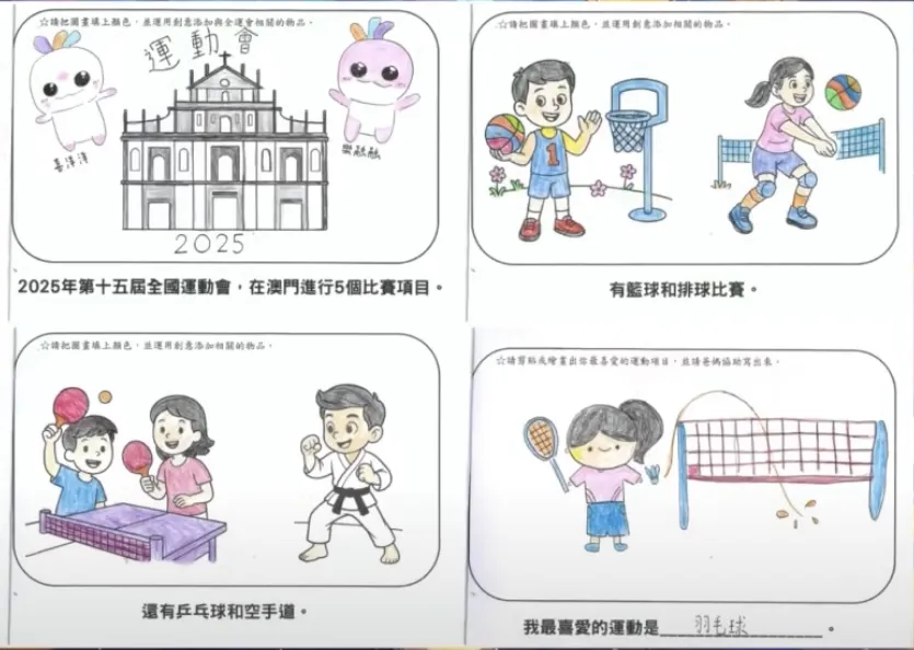 「全運會 齊參與」親子一人一書在創作中加深對全運會的深入淺出的理解。透過是次活動幼兒不僅對國家體育盛事全運會的認識,激發了運動興趣,也在運動中展現活力,並在火炬傳遞互動中培養堅持努力與合作精神。