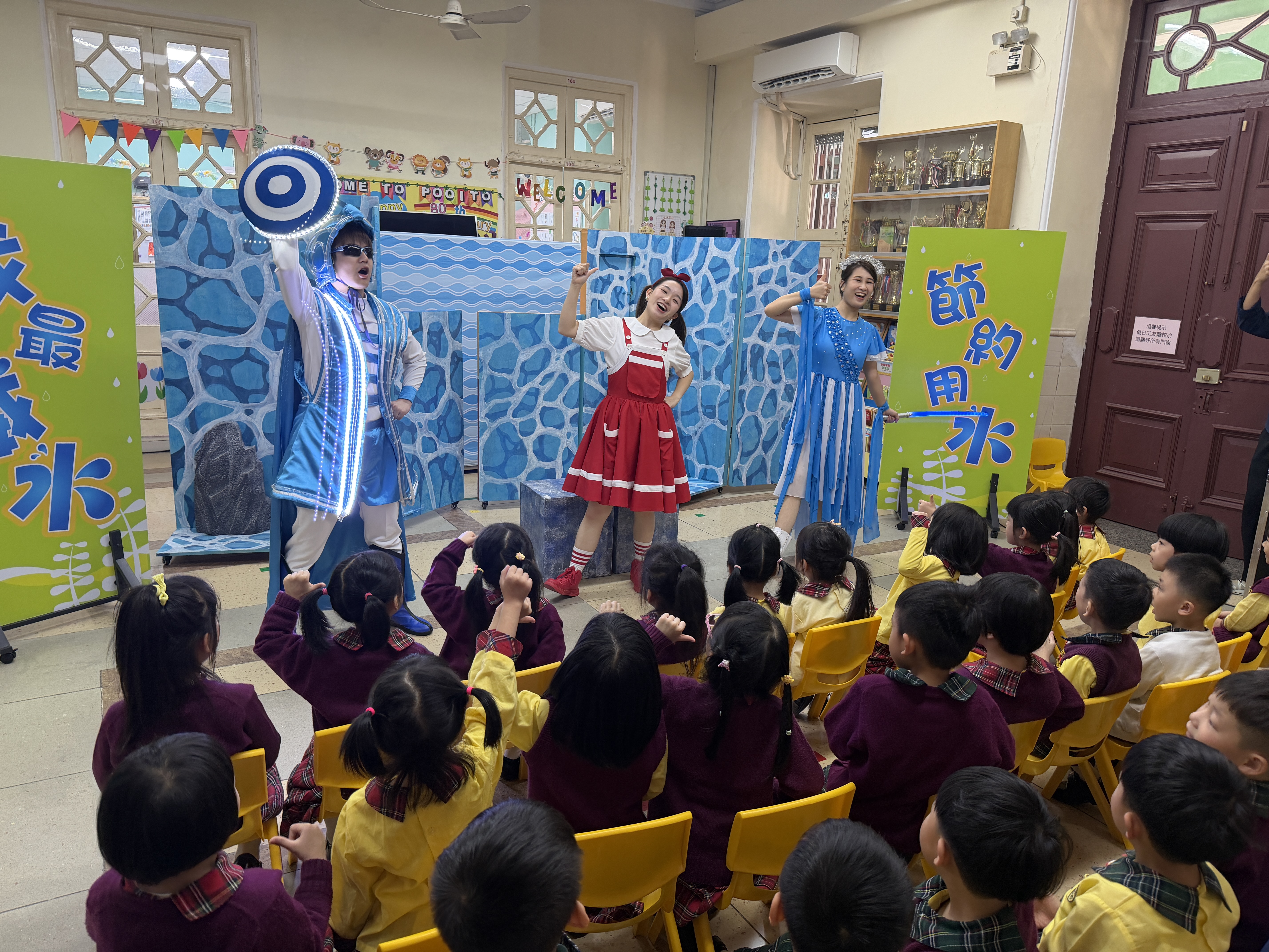 活動設計以幼兒的興趣與生活經驗為出發點,將生動有趣的「威水超人」戲劇表演融入教學場域。話劇中,透過貼近幼兒生活的劇情,清晰呈現「浪費水」的錯誤行為,並在「威水超人」的帶領下,小朋友們大聲喊出琅琅上口的節水口號,學習「隨手關緊水龍頭」、「以淋浴代替浸浴」、「重複利用水資源」等簡單又實用的節水方法。歡樂的劇情與互動式的學習,讓小朋友們在感受戲劇魅力的同時,更深刻體會到每一滴水的珍貴。向幼兒傳遞「珍惜水資源」、「節約用水」的訊息,為建設節水城市注入新動力。