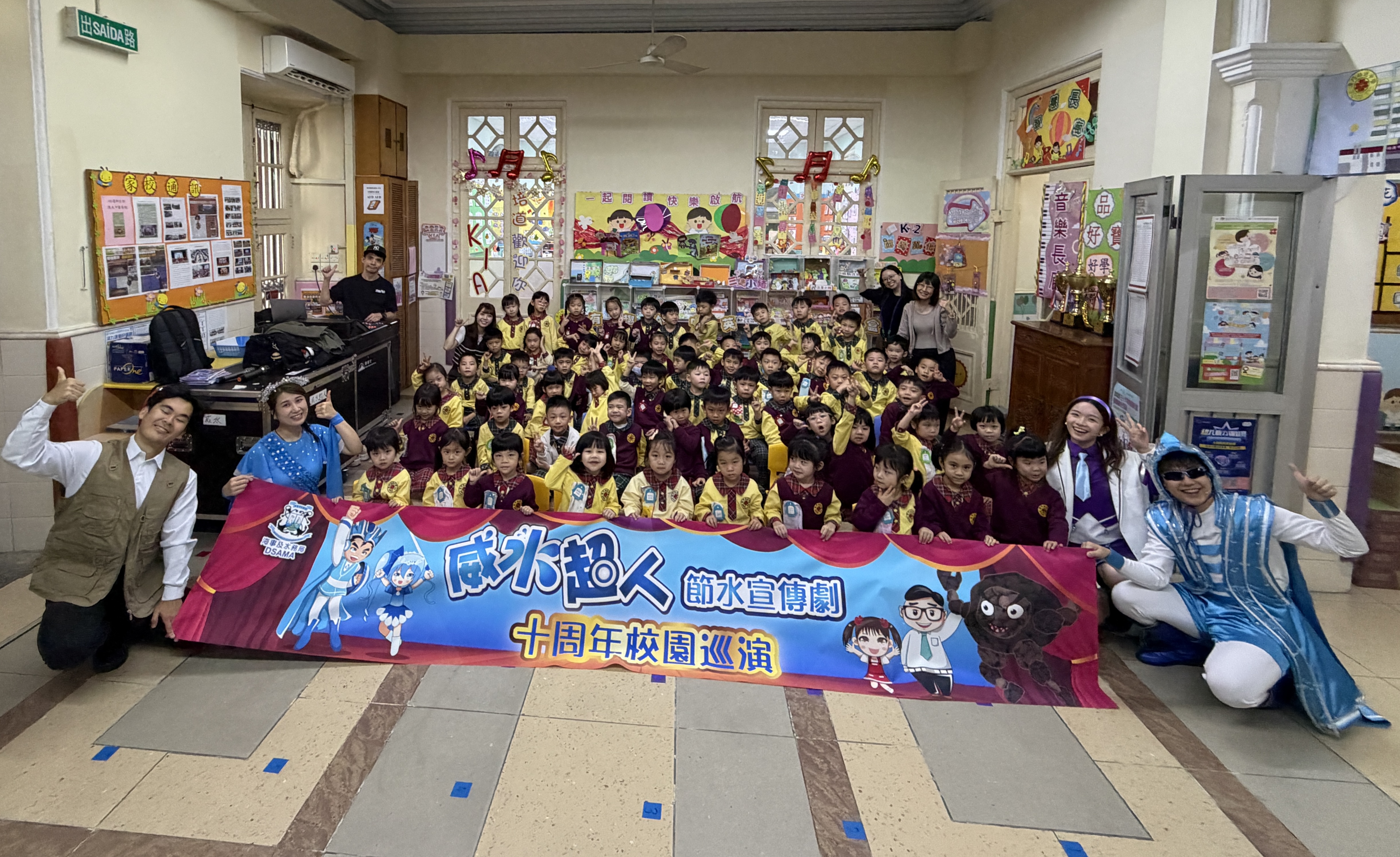 為深化幼兒珍惜水資源的意識,並將環保理念落實於日常生活中,日前培道南灣幼稚園邀請了由海事及水務局主辦的「威水超人」主題話劇到學校進行校園巡演活動!為小朋友們帶來一場既歡樂又富有教育意義的節水學習體驗。將節水教育從學校延伸至家庭與社區,輕鬆有趣的話劇演出讓學生把節水理念帶回家中,與家人一起節約用水,攜手成為守護地球資源的威水小英雄!