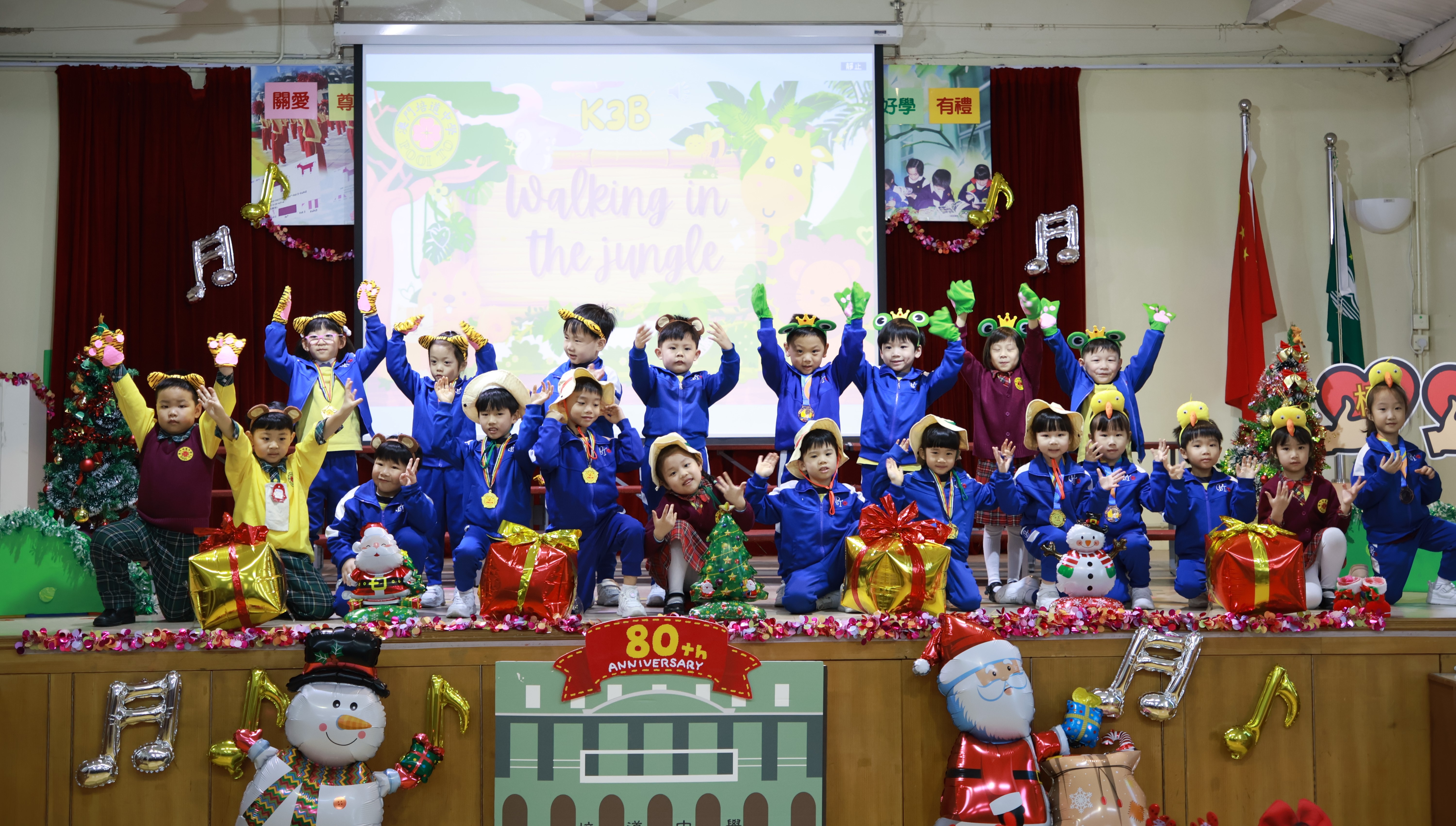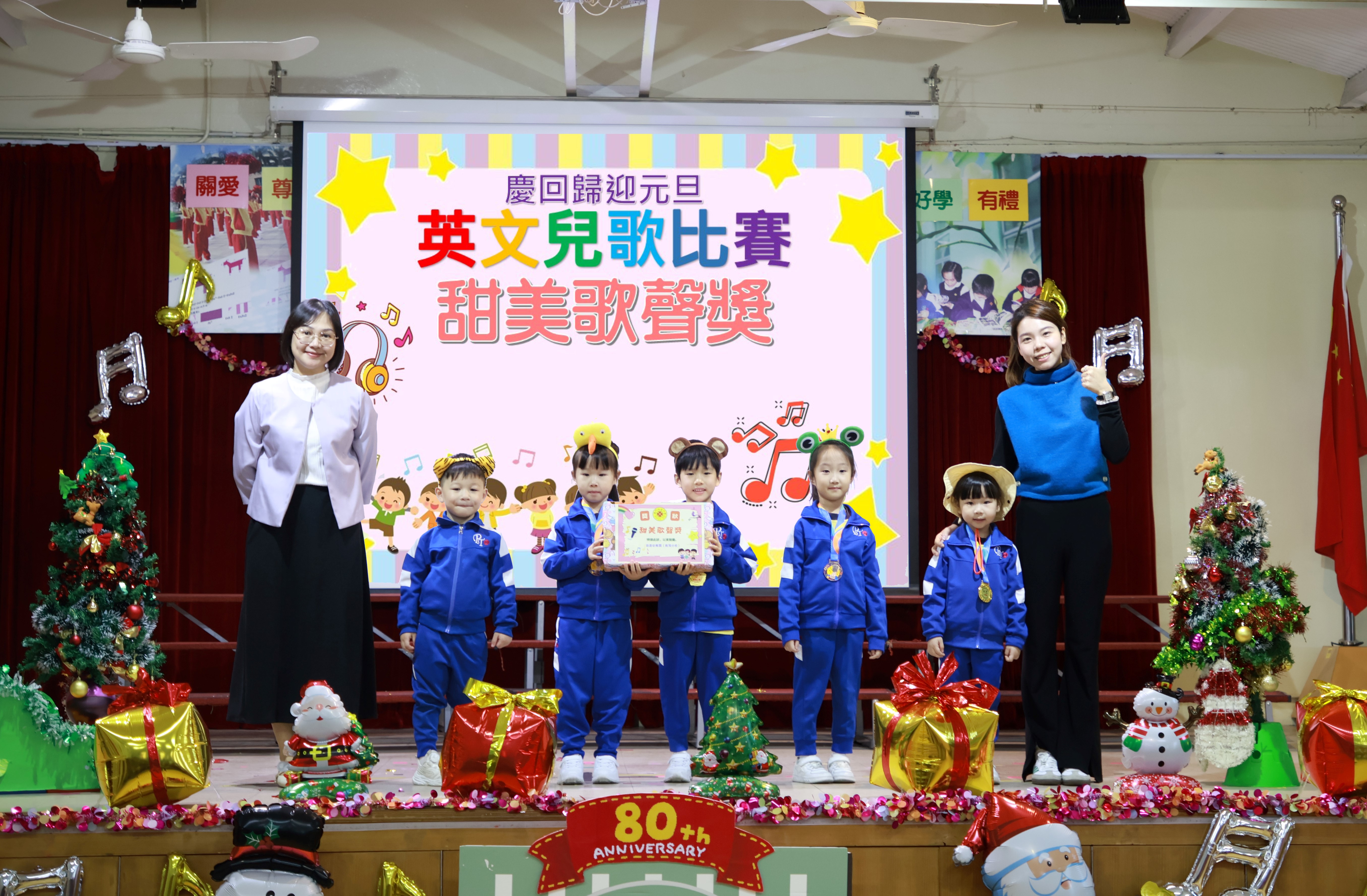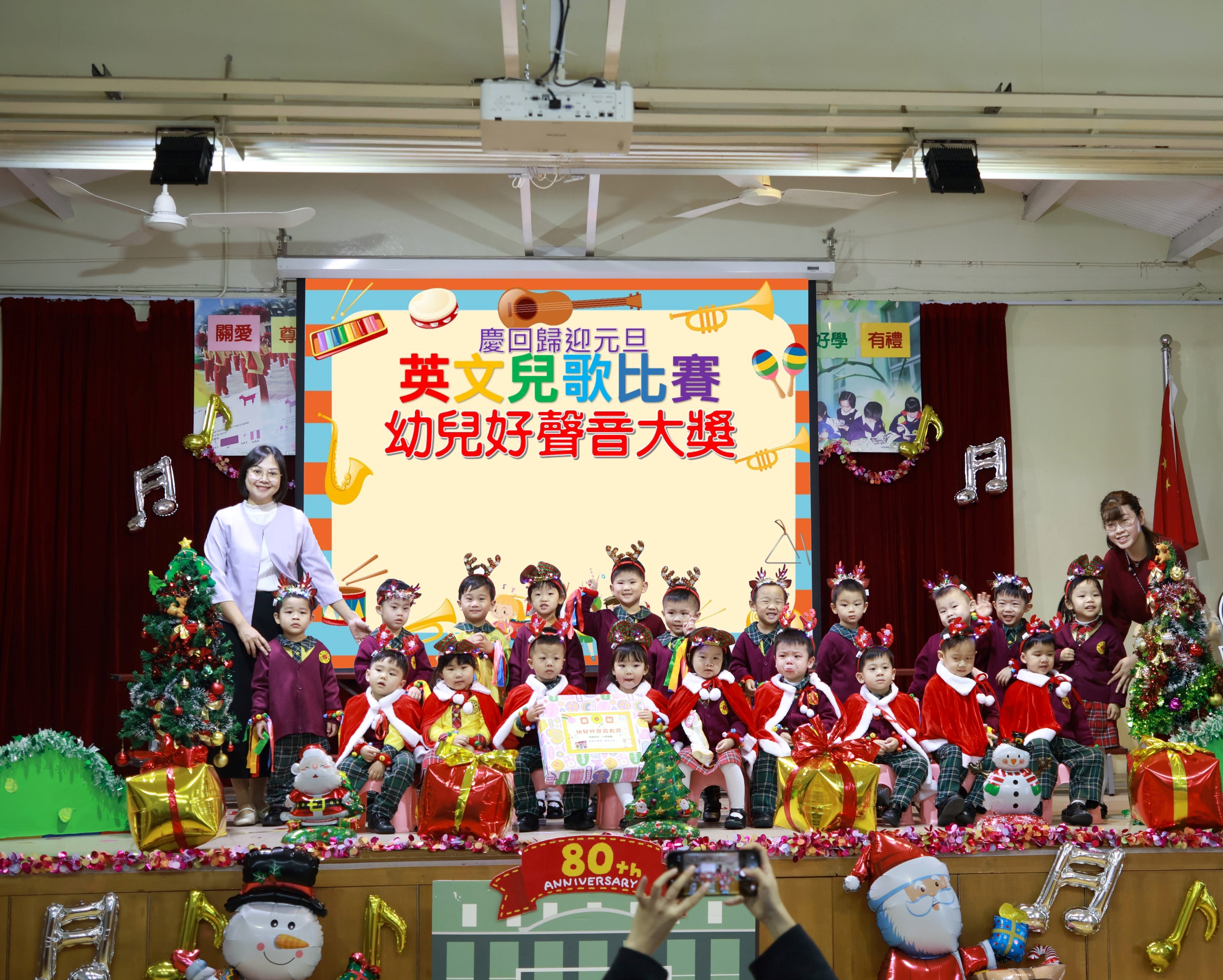 活動當天,各班小朋友們帶來的歌唱表演精彩滿分。儘管他們年紀尚小,卻全程專注投入,展現出極高的熱情與專注度。此次共有六支隊伍參賽,每支隊伍都表現出色。其中,K3C 班演唱的《The Penguin's Christmas Bells》憑藉活潑自信的台風,榮獲最佳台風獎;K3B 班帶來的《Walking in the Jungle》,歌聲清脆甜美,一舉奪得甜美歌聲獎;而 K1A 班的小朋友們以一曲《Little Voices: A Christmas Star Show》,用稚嫩卻充滿感染力的嗓音,贏得了幼兒好聲音大獎。