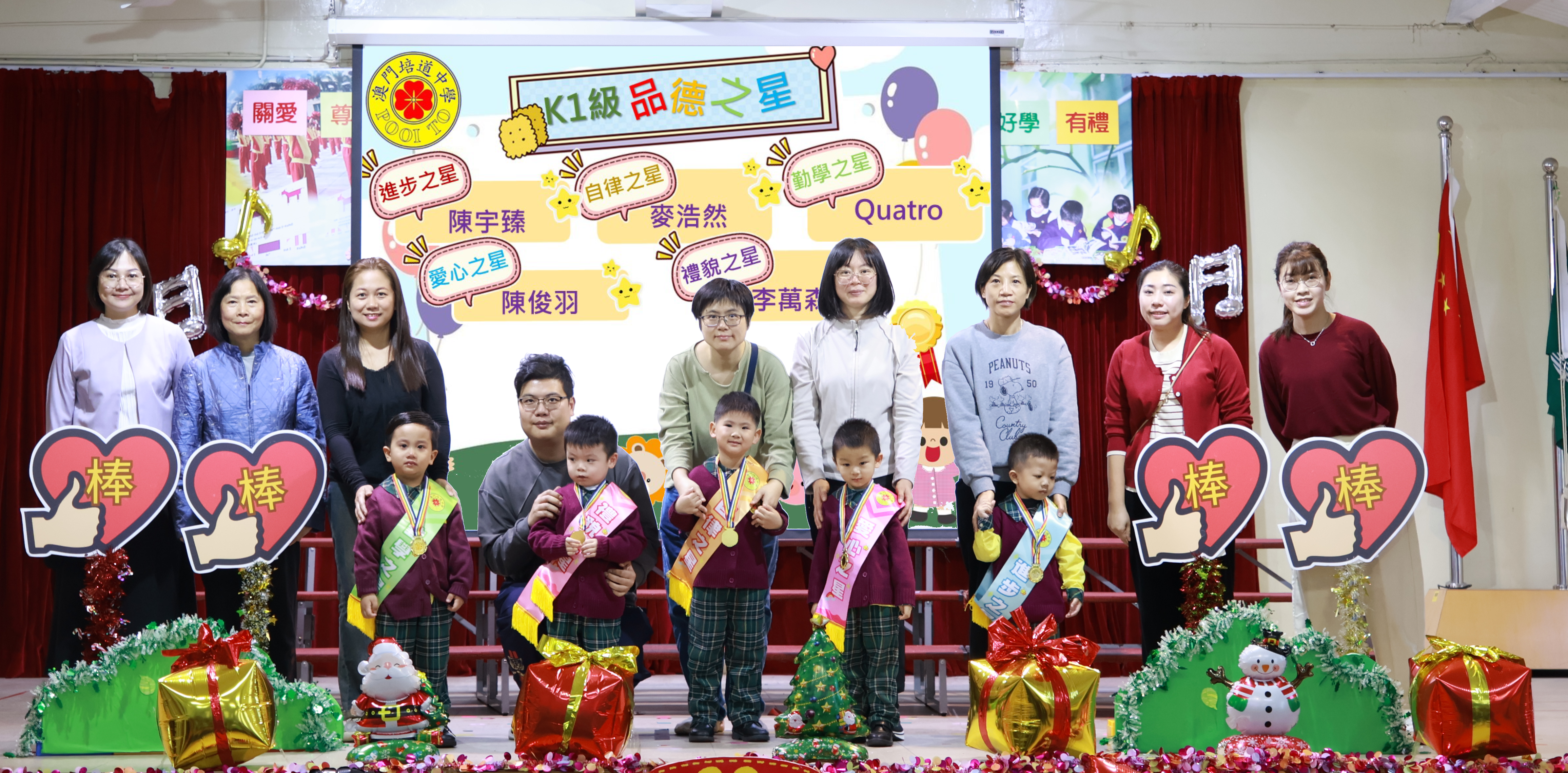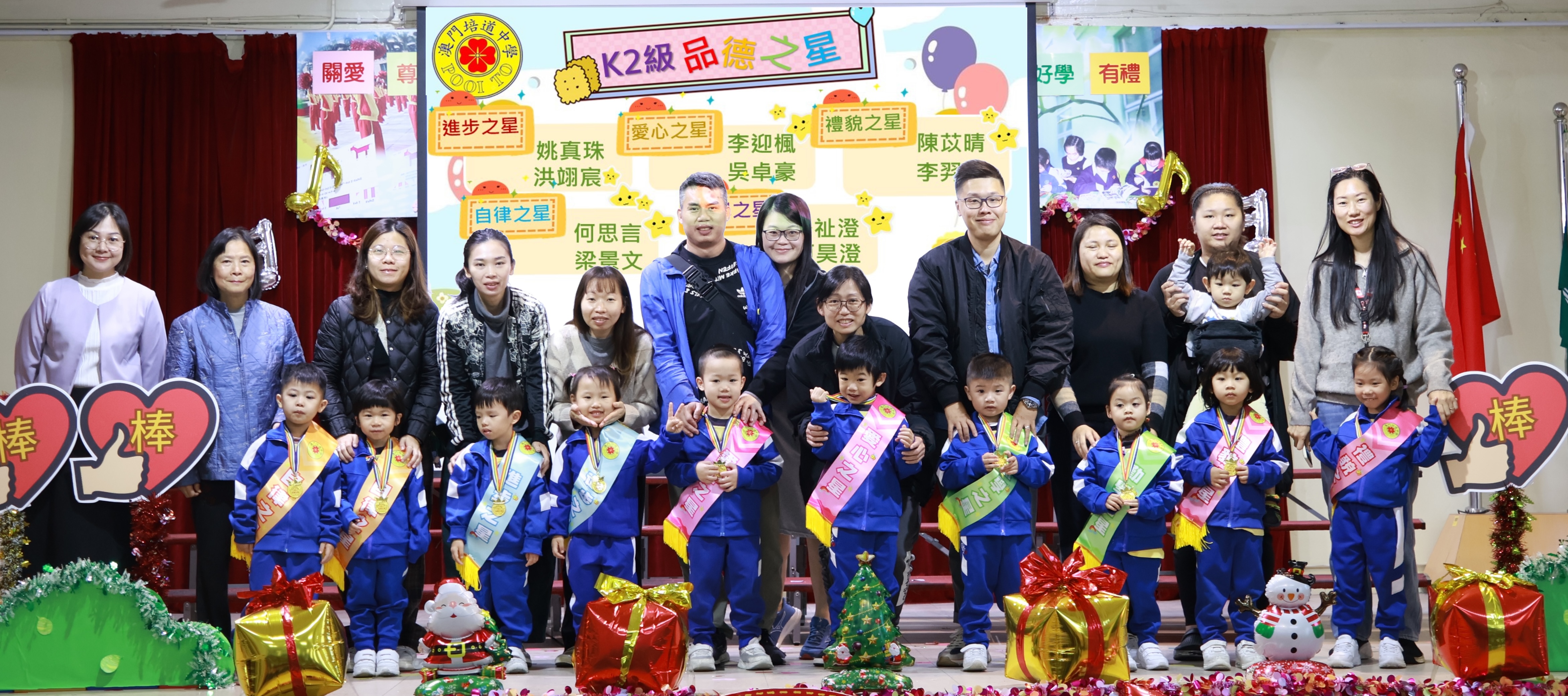 本次頒獎禮每班共設五大獎項,分別為「進步之星」、「自律之星」、「勤學之星」、「愛心之星」和「禮貌之星」,每個獎項均對應品德教育的核心價值。活動當天,幼稚園禮堂座無虛席,逾200名家長與師生共同見證榮耀時刻,場面盛大,頒獎禮現場更充滿溫馨與激昂。