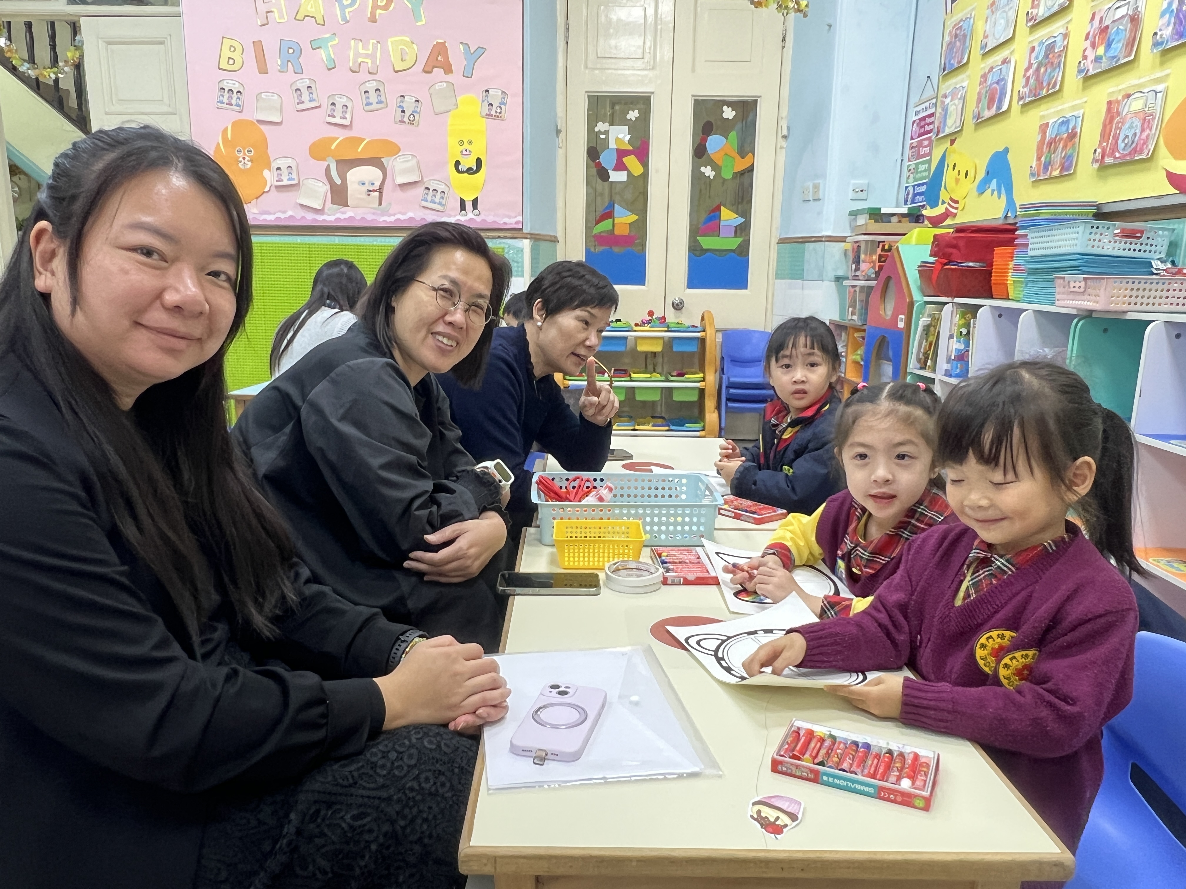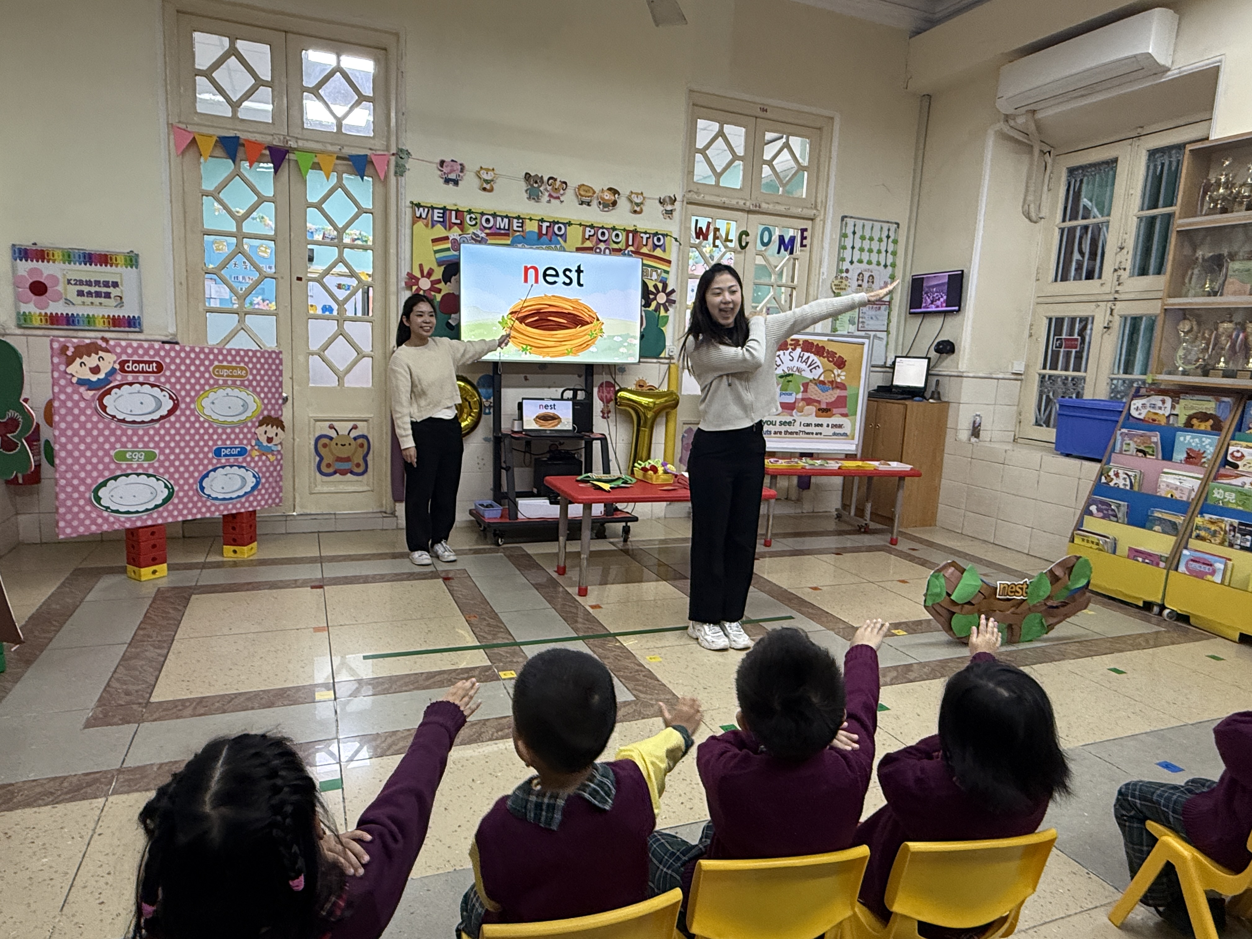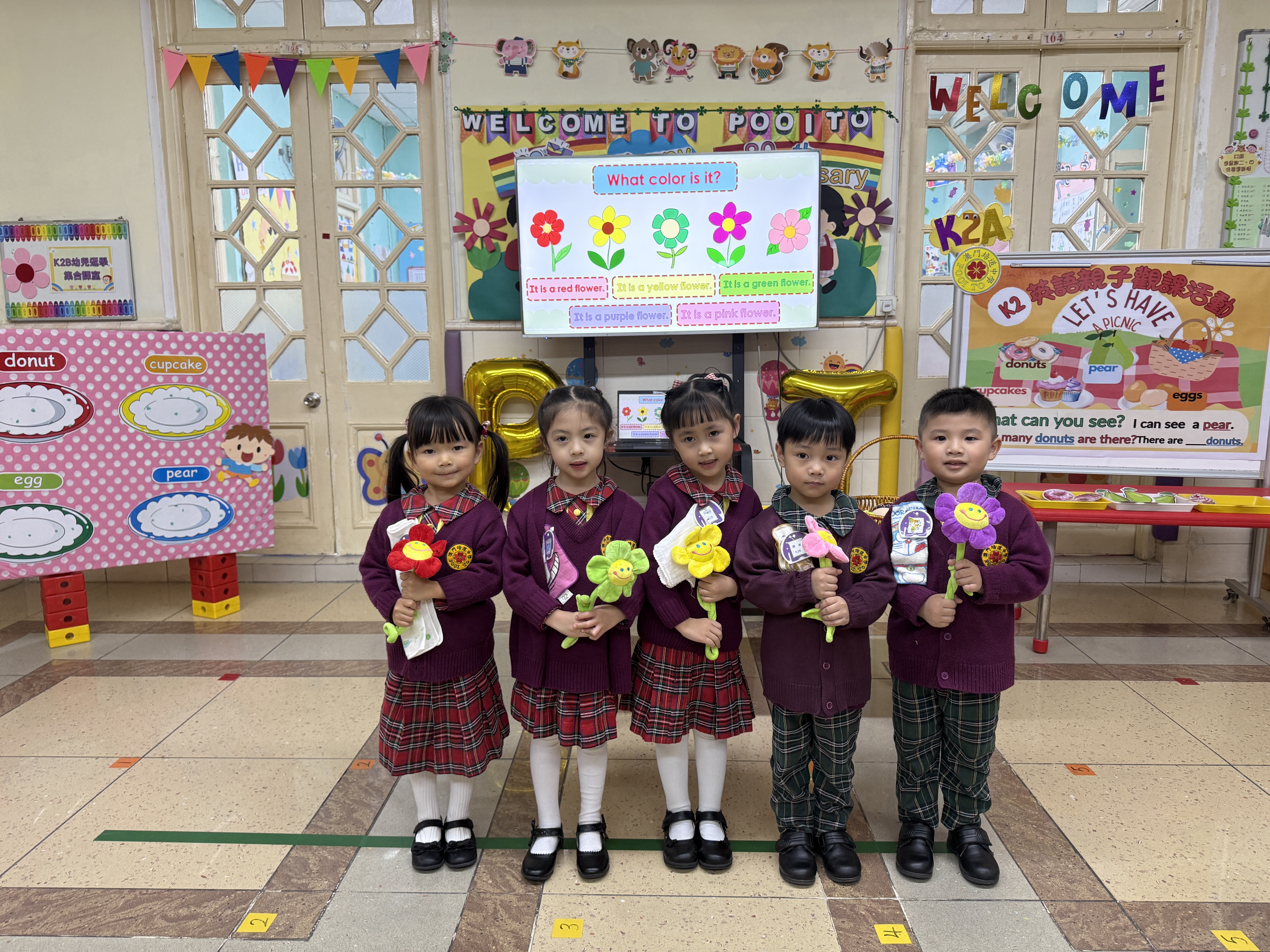 本校南灣幼稚園在K2級舉辦以「Let's Go Picnic!」為主題的英文親子觀課活動,通過生動的「郊外旅程」情境教學,幼兒在遊戲中自然掌握了「tree」、「leaf」等核心詞彙及「in/on」句型。
