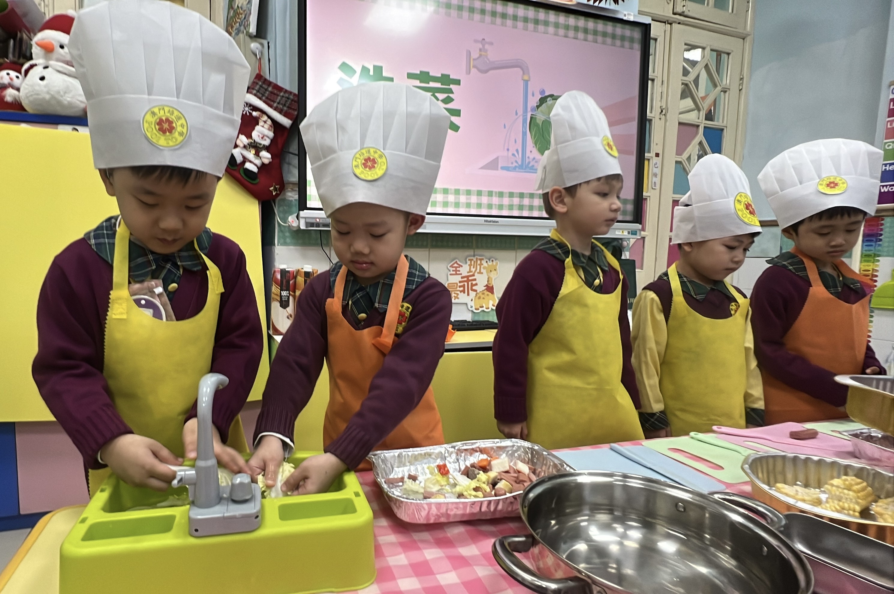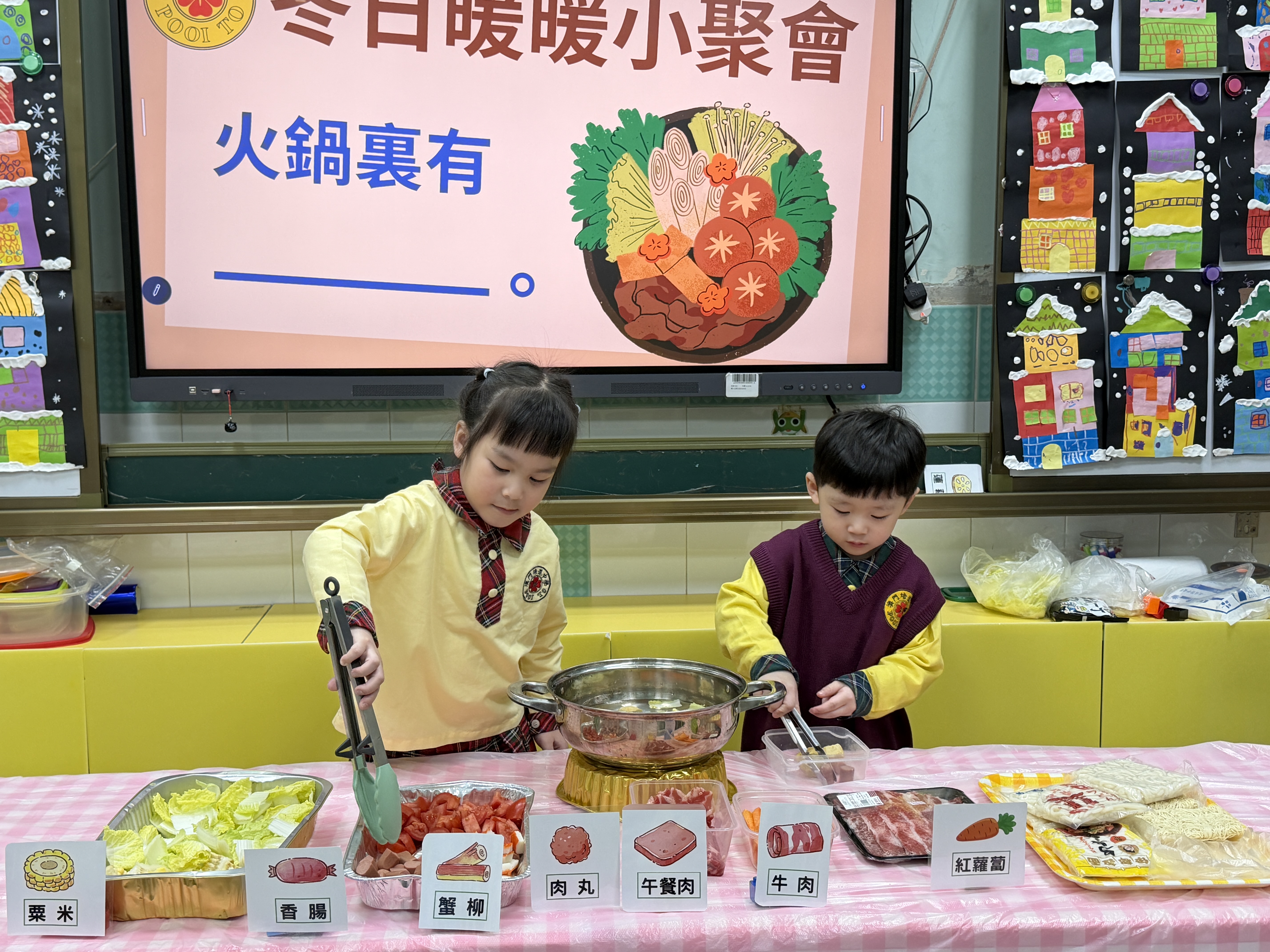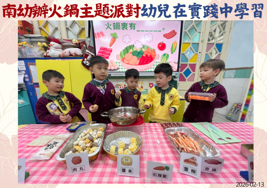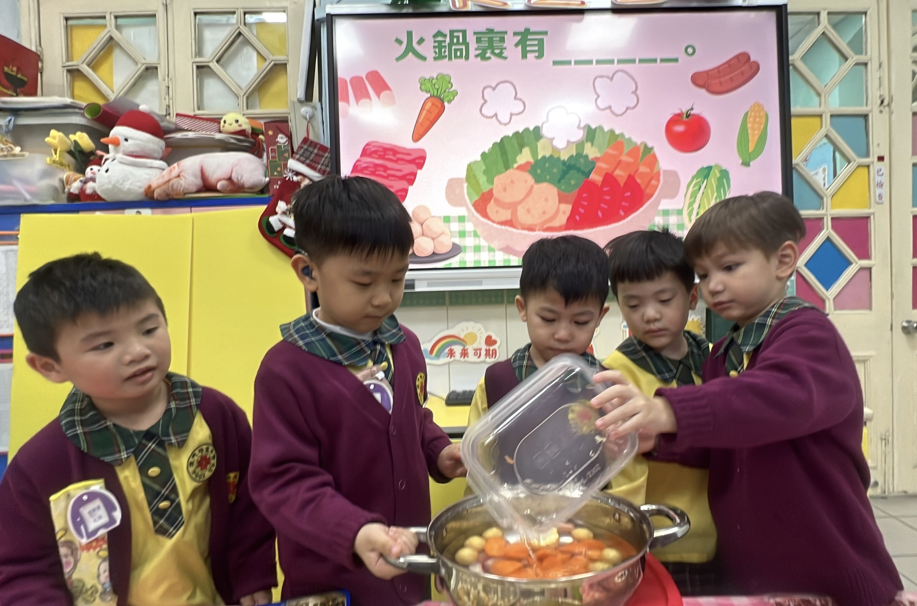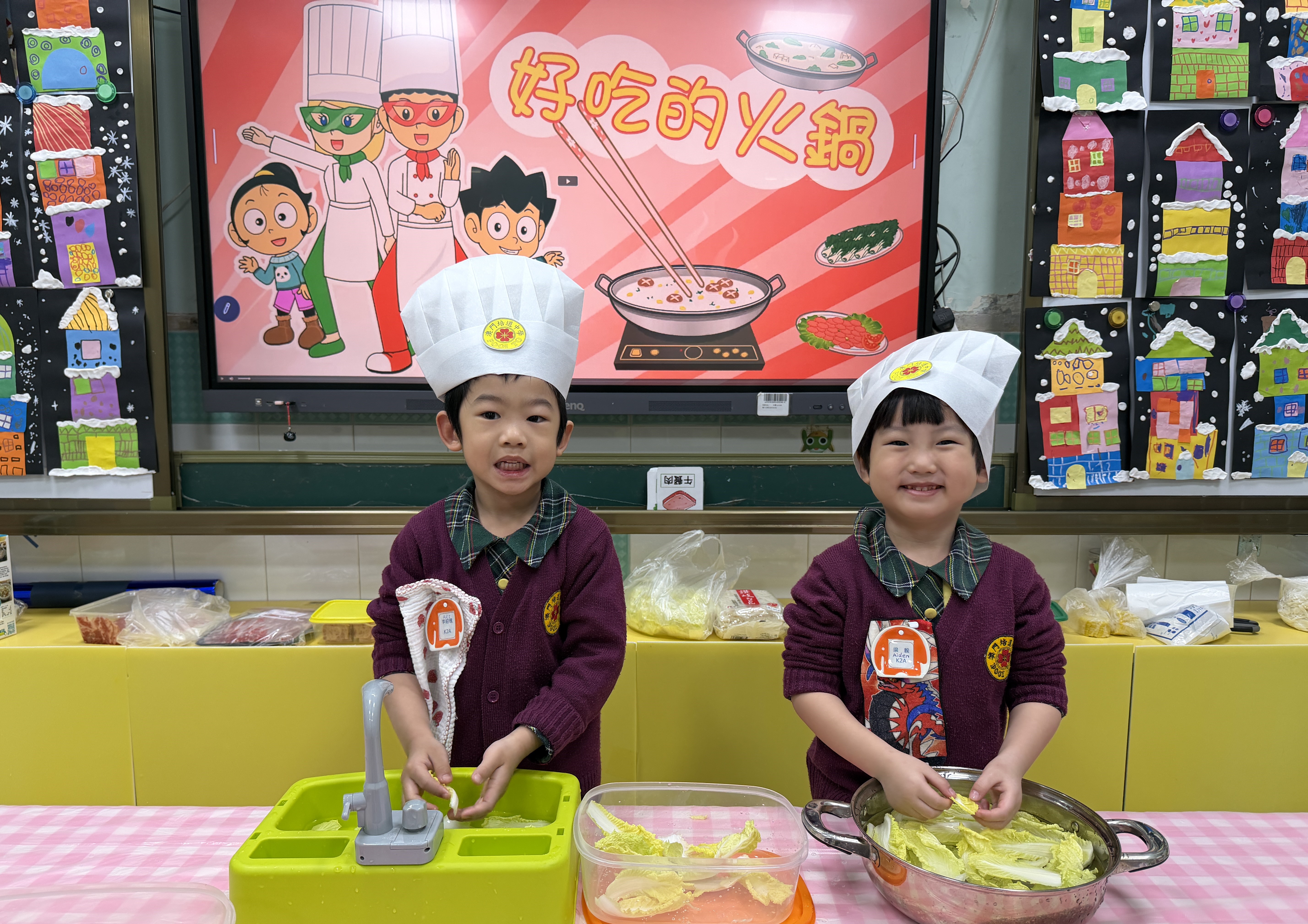 本校南幼K1及K2級日前開展了「暖暖吃火鍋派對」主題活動。活動將教育與生活實踐相結合,幼兒在親身參與中體驗勞動的樂趣,以及分享的快樂。此次活動通過真實的生活場景,幼兒不僅學習了食材分類、營養搭配等知識,更重要的是培養了動手能力、合作意識和分享精神。