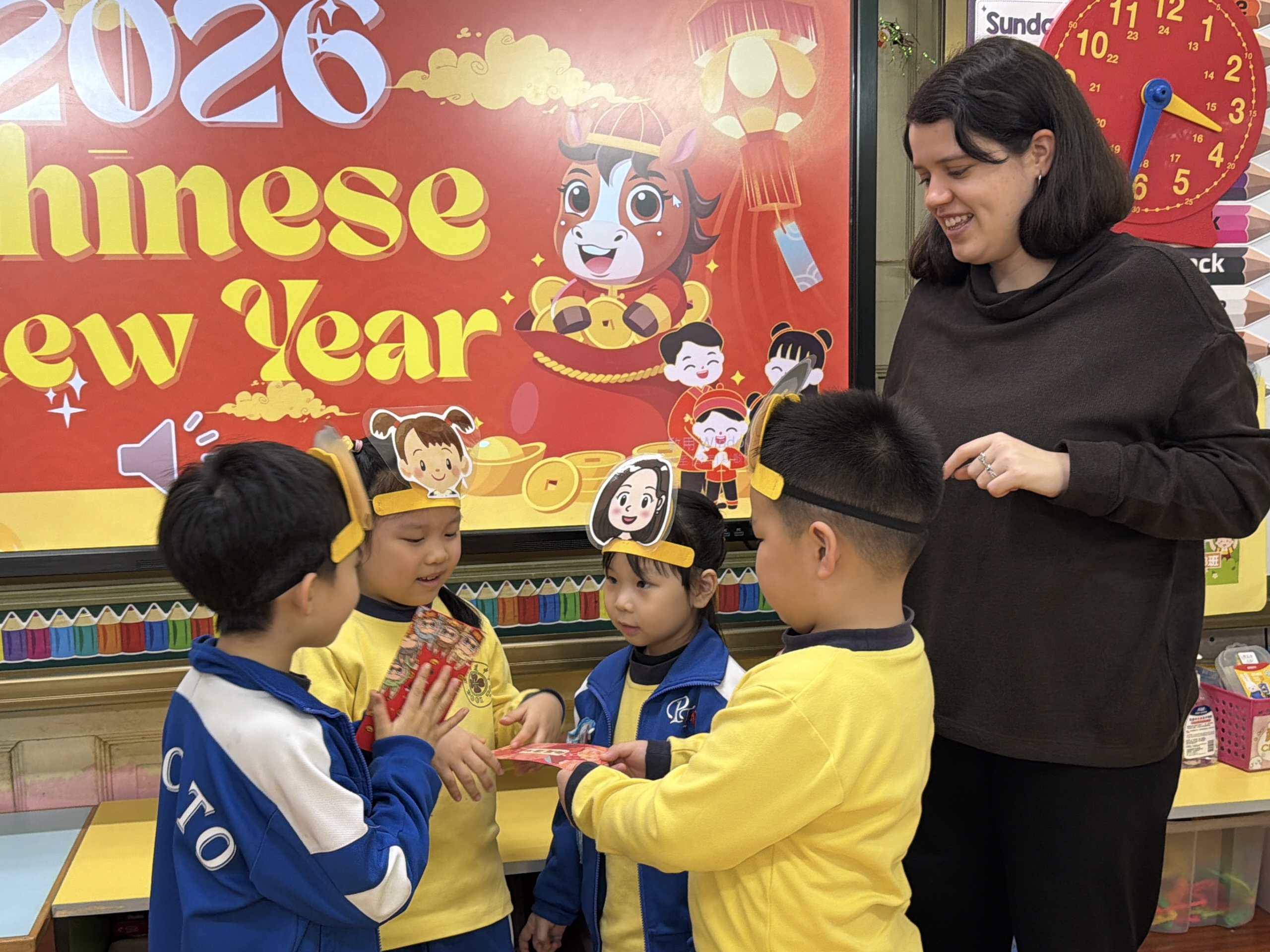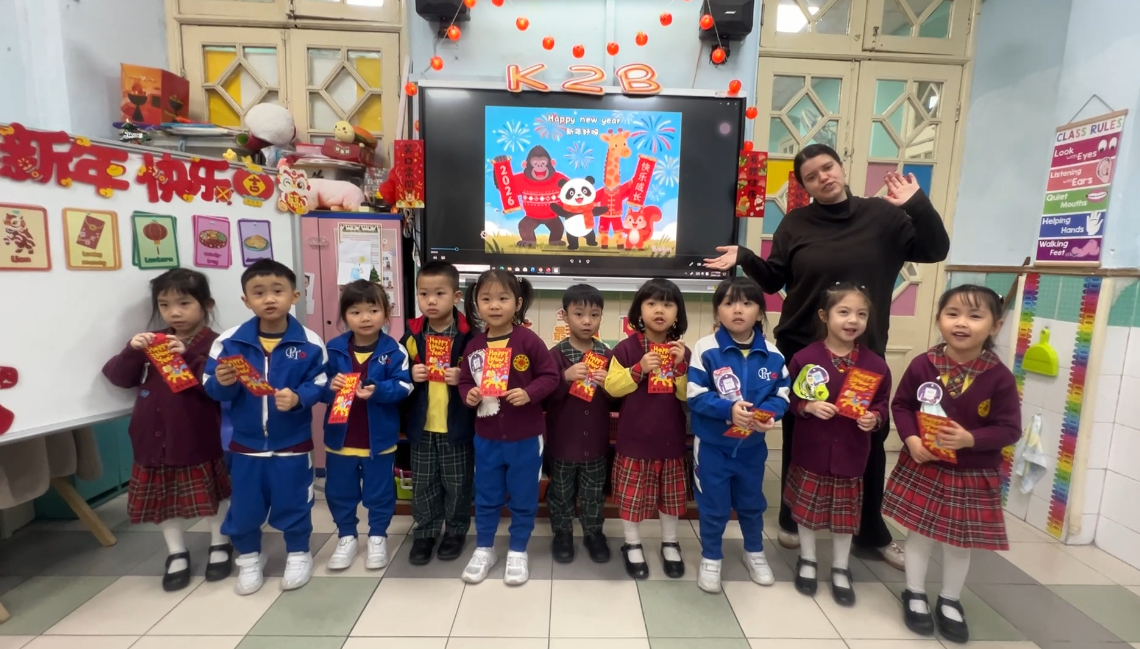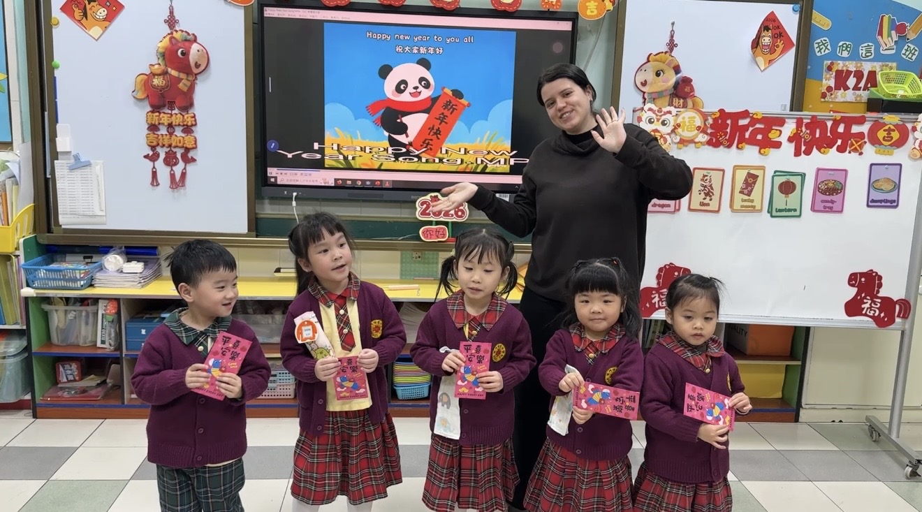 農曆新年將至,為讓幼兒在濃厚節日氛圍中沉浸式學習英語,本校南灣幼稚園特別聯同外籍教師 Miss Lara 舉辦新春主題英語互動活動,透過趣味方式融合節日文化與英語啟蒙,師生同樂,共迎佳節。