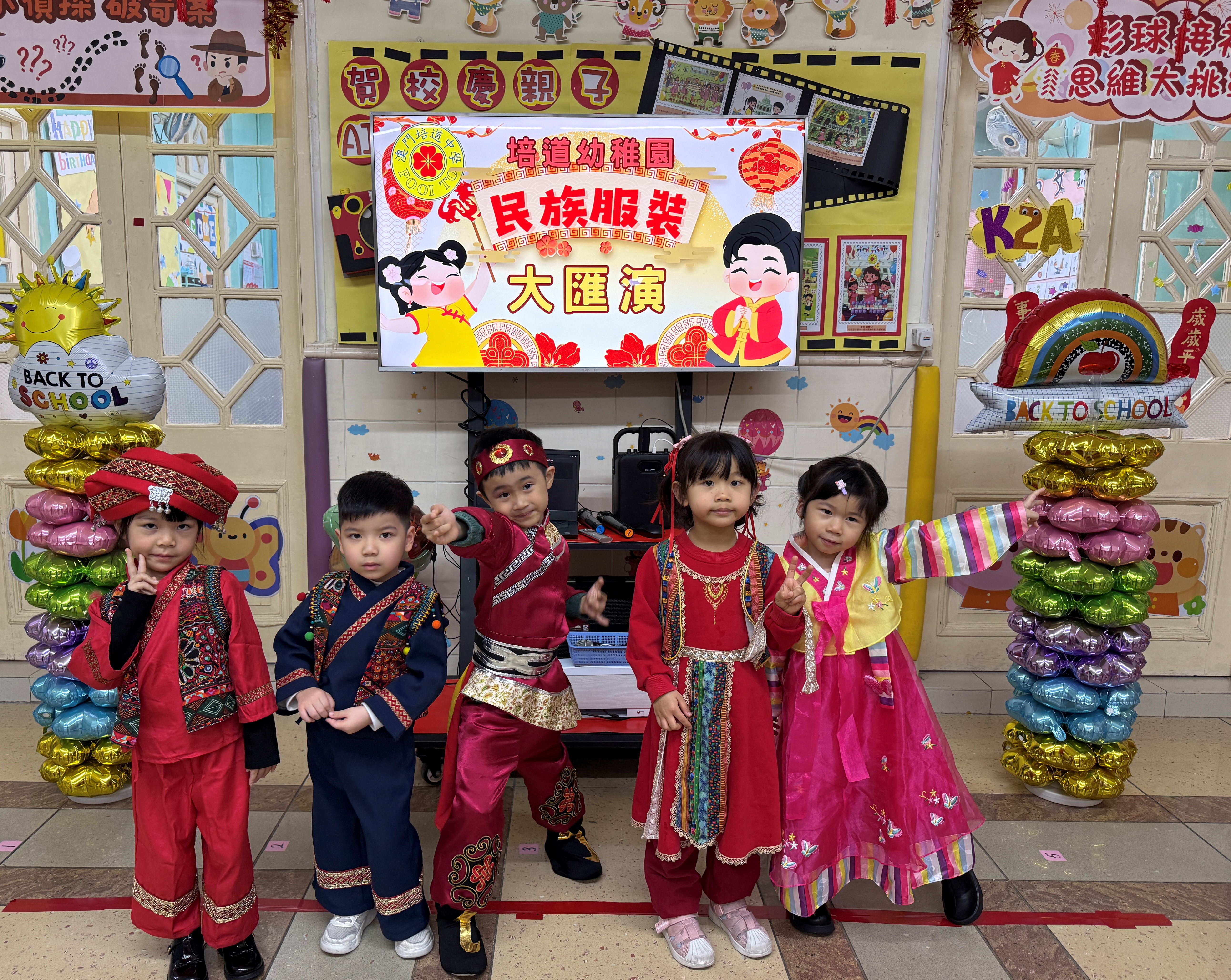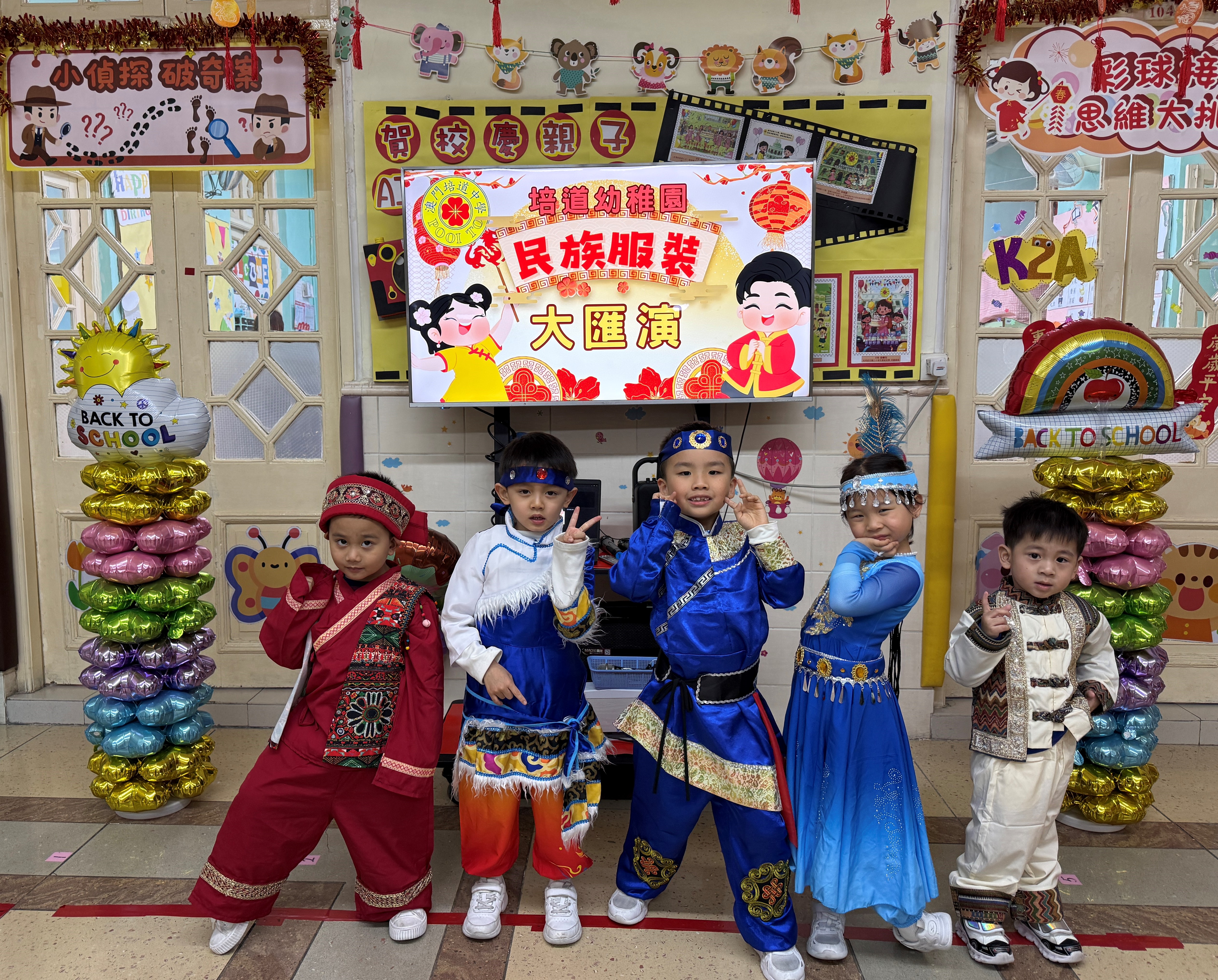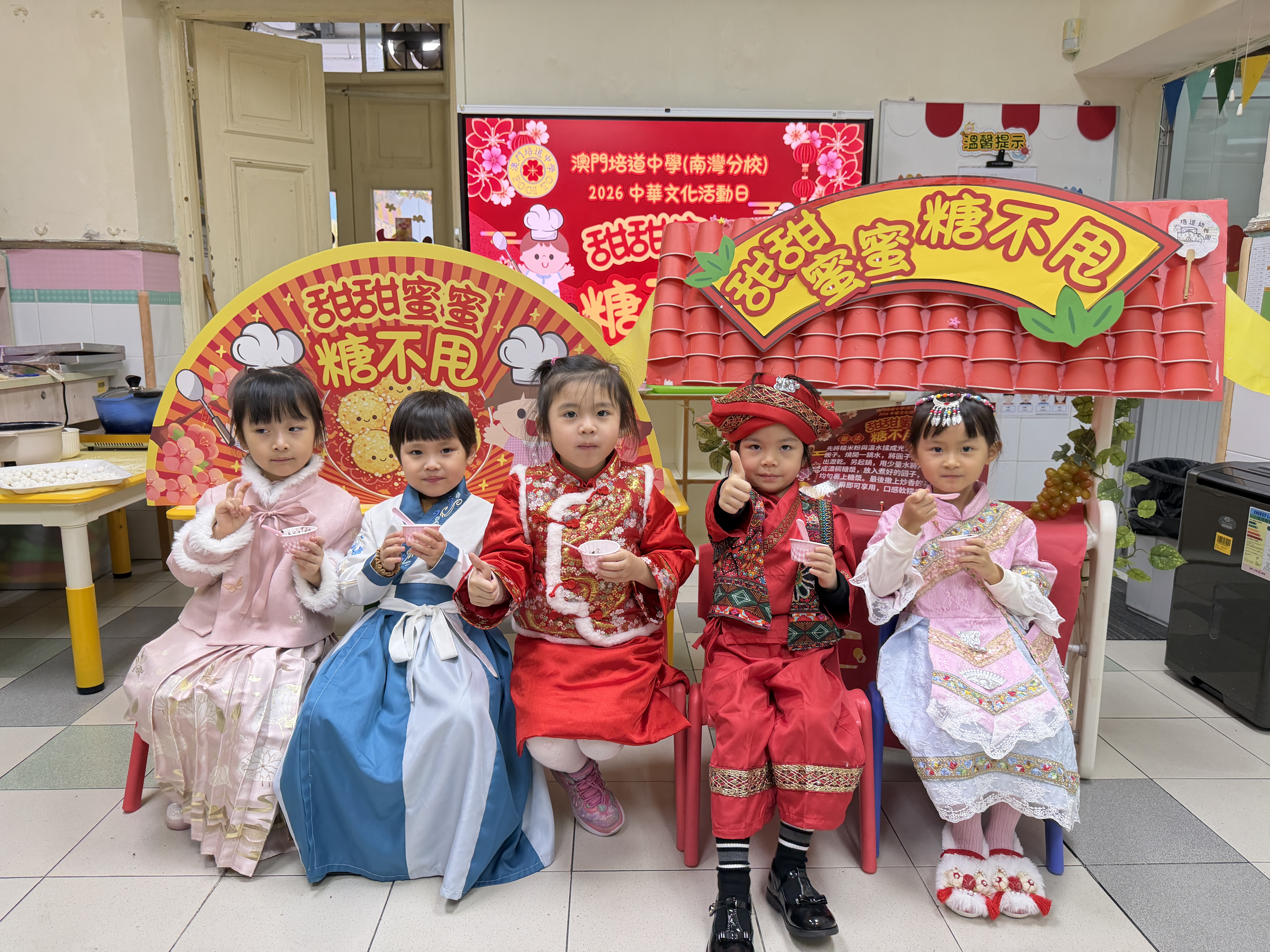 學校舉辦多項活動,包括「中華民間劇場——有趣皮影戲」吸引孩子們駐足欣賞,讓幼兒初探民間藝術的魅力;「巧手迎新春」則充滿童趣,小朋友創作出一幅幅洋溢年味的手工作品,為節日添上一抹繽紛色彩;遊戲區的「福氣投投樂」與「新春紅包配配樂」將傳統習俗融入趣味挑戰,孩子們在歡笑與互動中,體會到新春的祝福與喜悅;而美食攤位「甜甜蜜蜜糖不甩」更讓孩子一邊細味傳統小食,一邊感受中華飲食文化的滋味。活動最高潮,則是「民族服裝大匯演」。小朋友穿上各具特色的民族服飾,自信滿滿踏上舞臺,贏得全場熱烈掌聲。