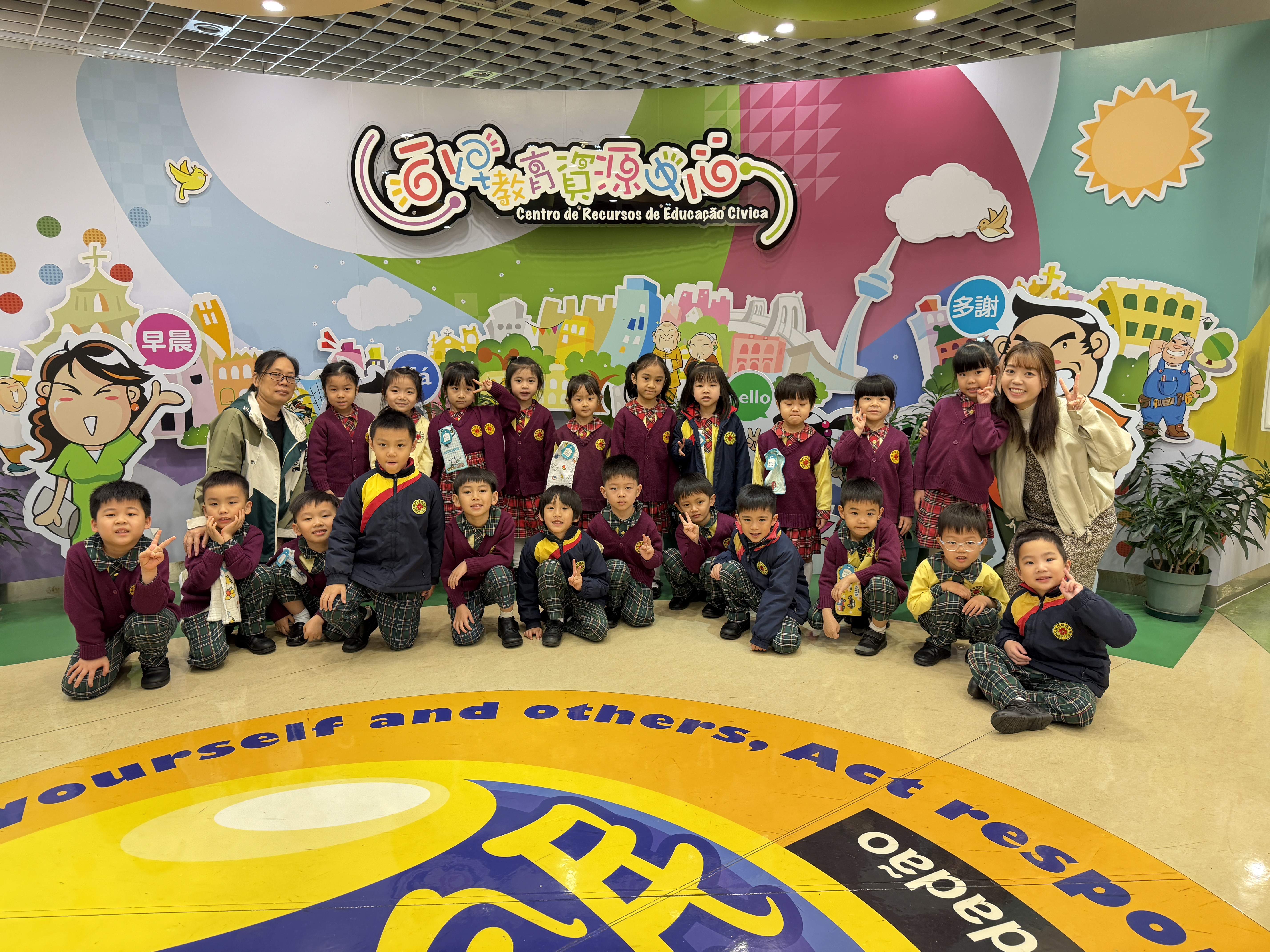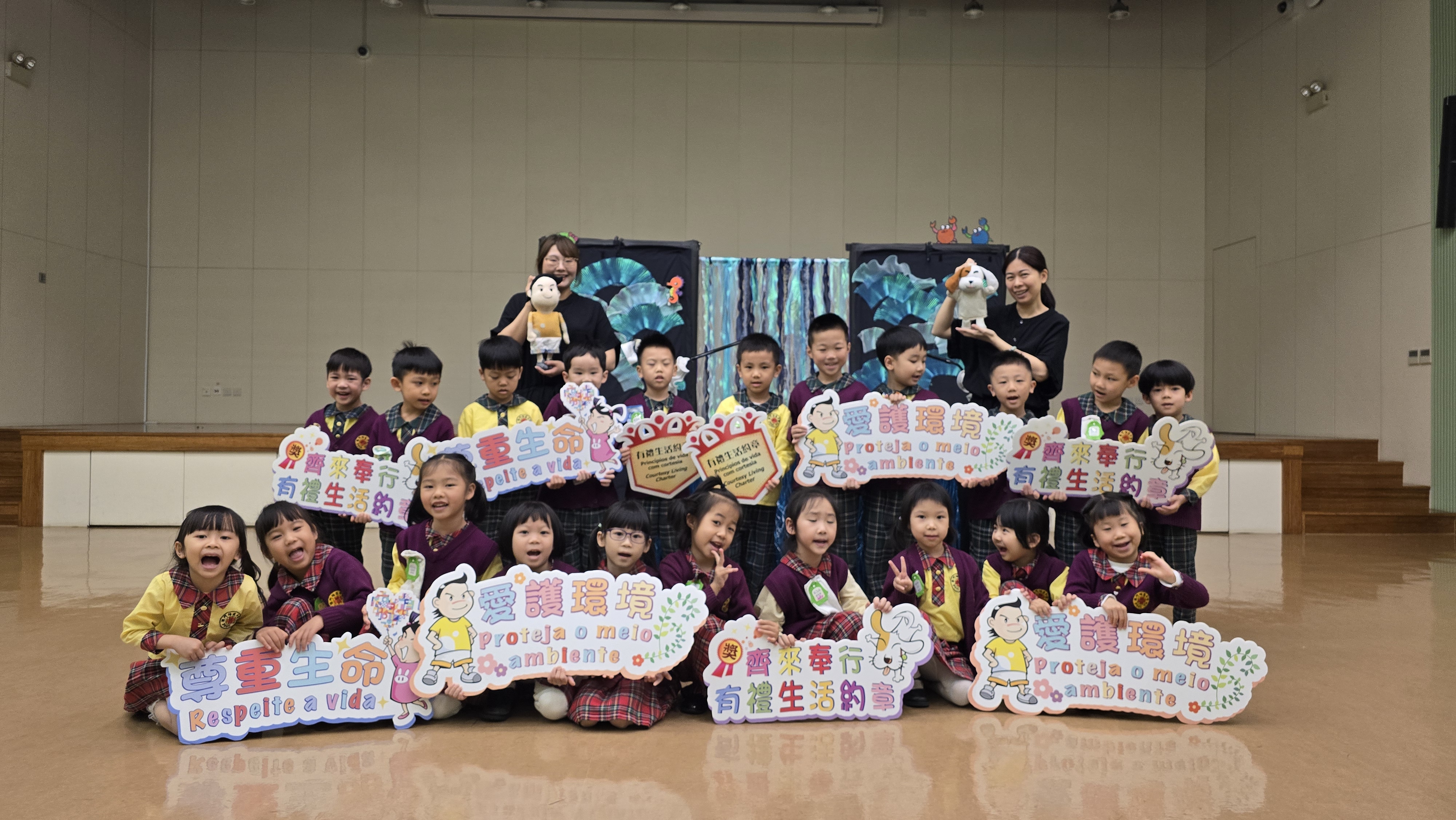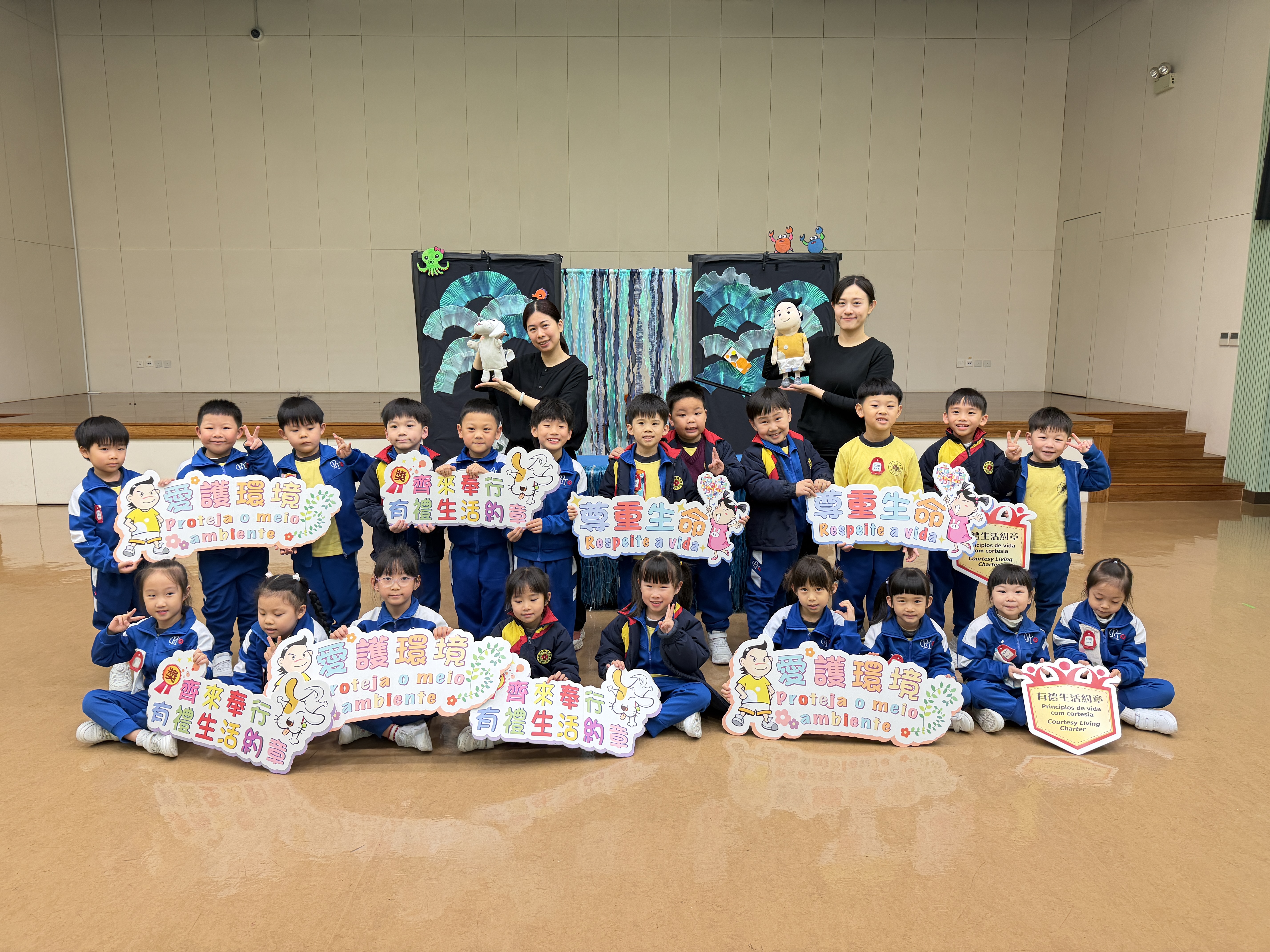K3學生參與公民教育資源中心海洋布偶劇場之旅 本校南灣幼稚園K3學生走進澳門公民教育資源中心,開啟「海洋布偶劇場」外展活動。活動中,草莓田劇社帶來精彩的布偶劇,小朋友們專注追隨主角「和仔」探索海底世界;觀劇後幼兒踴躍參與分組討論與遊戲環節,積極分享減塑、愛護海洋的小方法,每位學生化身為「環保小先鋒」。幼兒在歡樂中認識生態環境保護的意義,學習成為有責任感的公民,收穫滿滿。